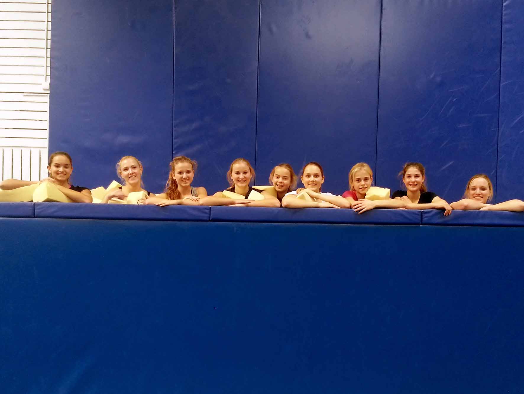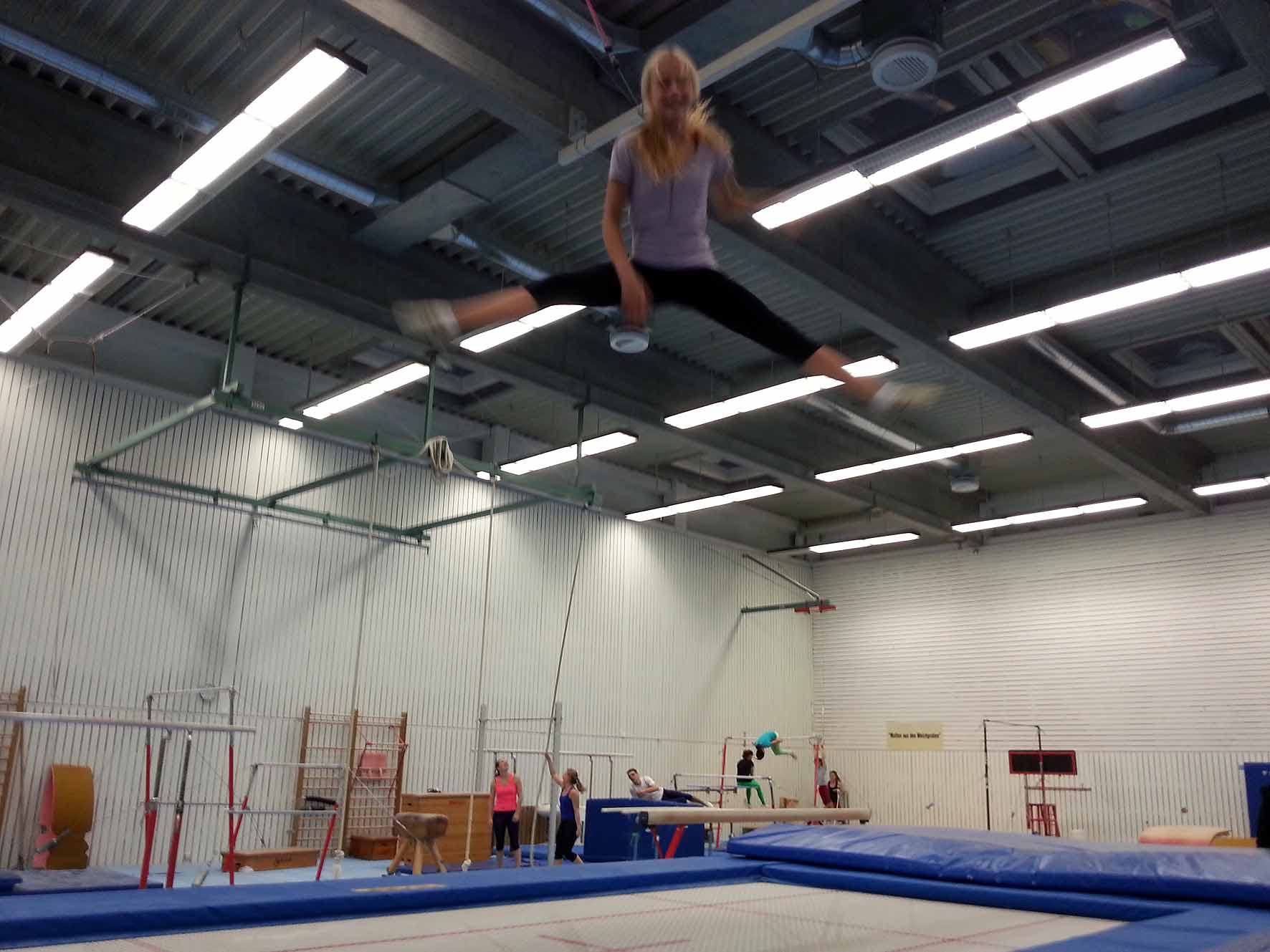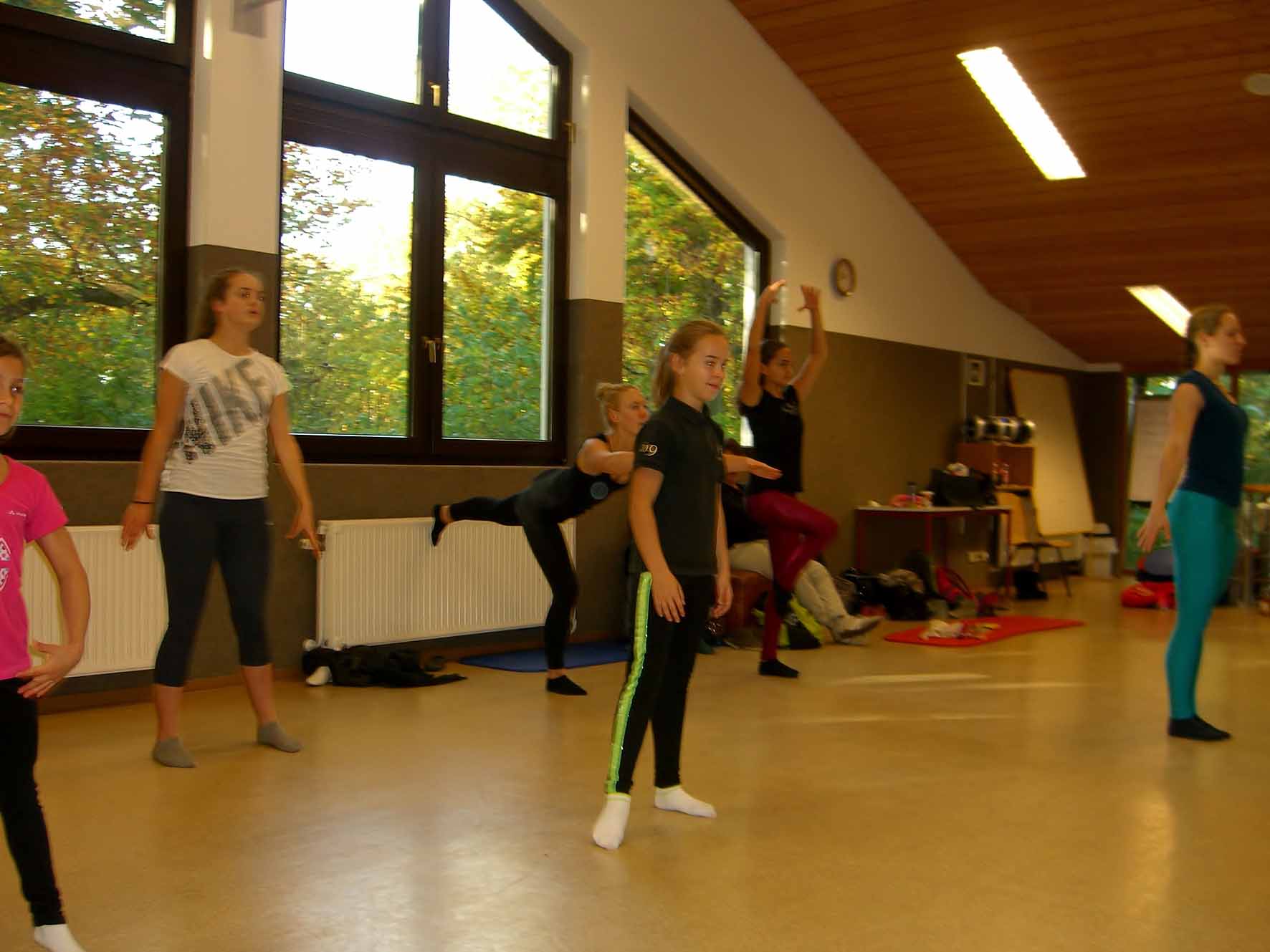 Schwerpunktmäßig hatten wir an diesem Wochenende Geräte- und Bodenturnen, Fall- und Landetraining, Haltung und Dehnung, Ausdruck, Krafttraining und bei Interesse auch Schwimmen. Also eine bunte und interessante Mischung, die uns viel Motivation und viele Anregungen für das weitere Training mitgegeben hat.