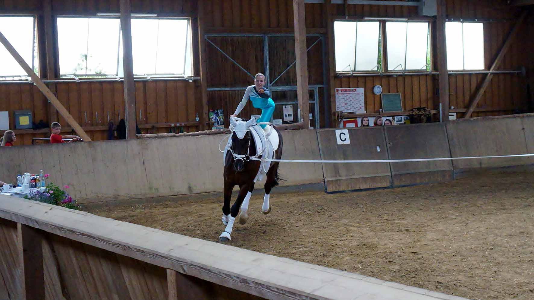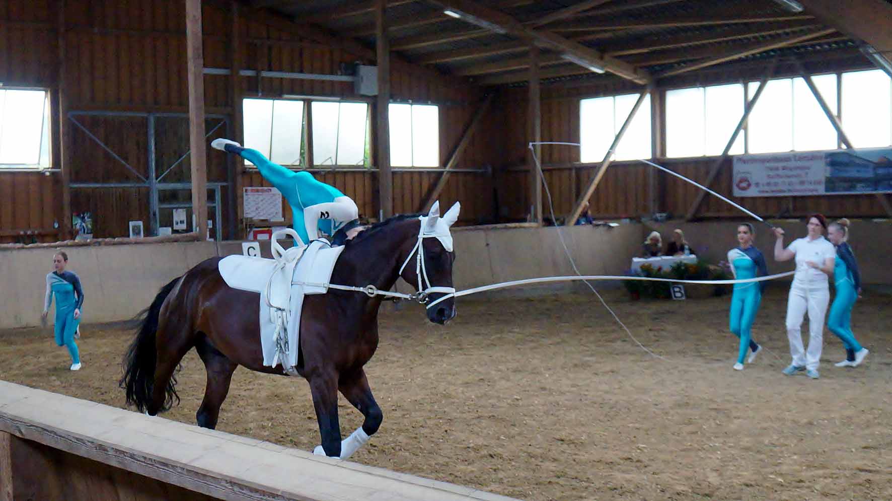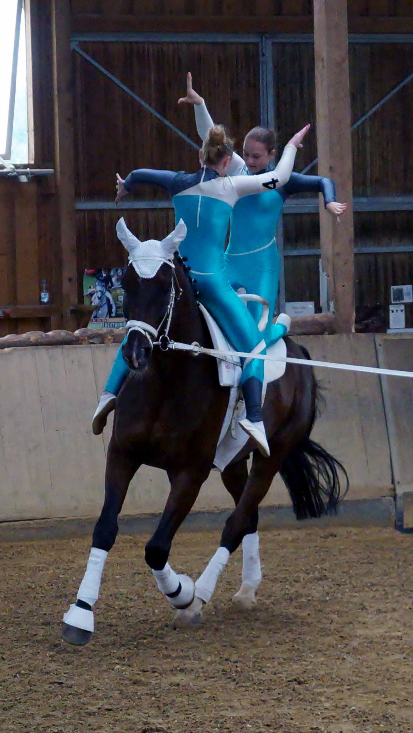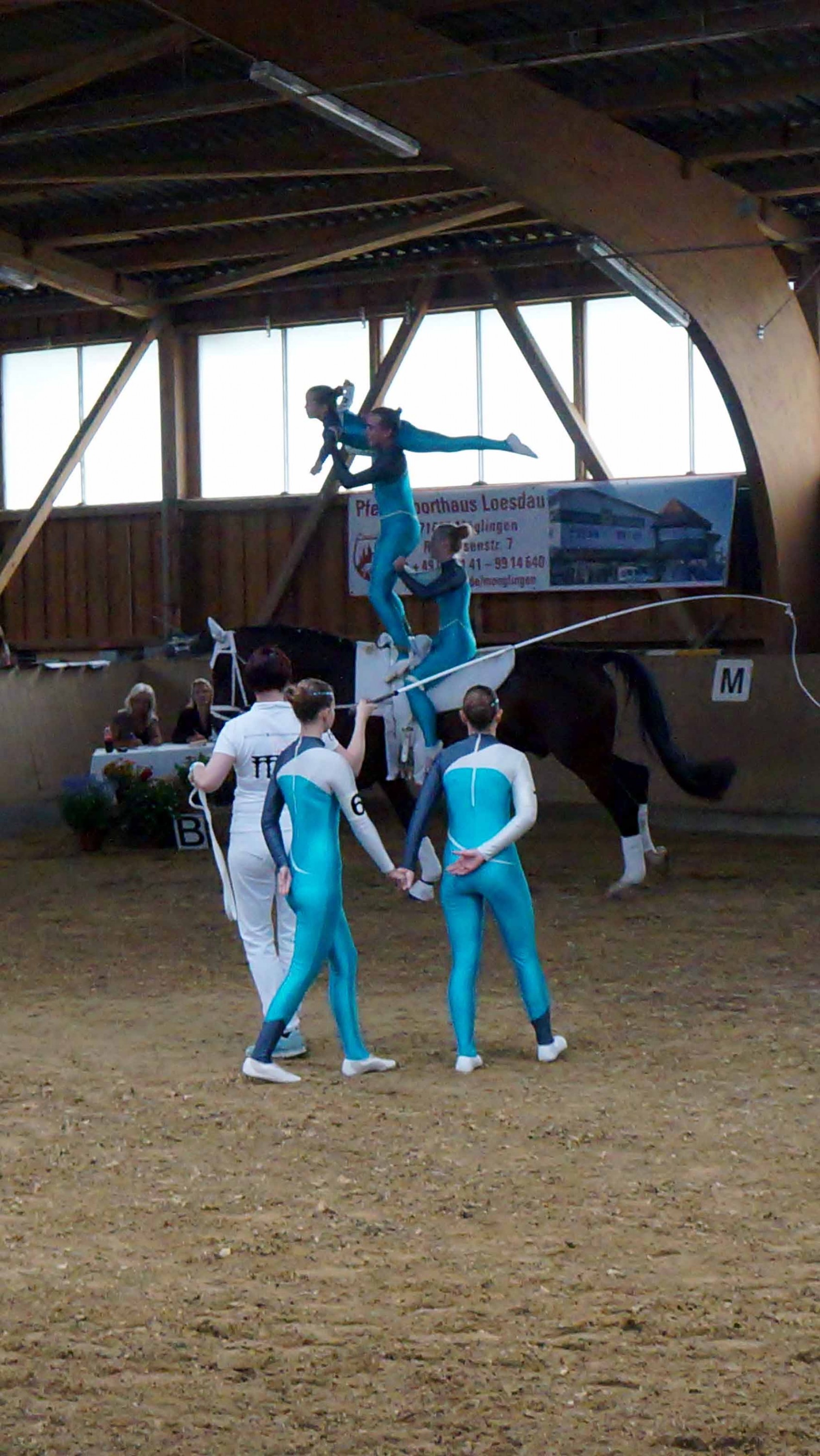 Den ersten Start hatte das M-Team mit Pflicht und Kür auf Carneol. Wir wurden wieder von Annett von den Juniors unterstützt, die ihren Job mal wieder absolut souverän gemeistert hat. Danke dafür, Annett! Da Pferd und Voltis fit und munter waren, waren wir schon mit unserer Pflicht zufrieden und konnten sehr gelassen und motiviert an die Kür gehen. Die Kür lief dann ebenso schön und ruhig durch, sodass wir das Turnier mit einem super Gefühl und einem 2. Platz (Wertnote 6,098) abschließen konnten. Luna hat sogar noch den Sonderpreis für die beste Pflicht bei den M-Teams bekommen!