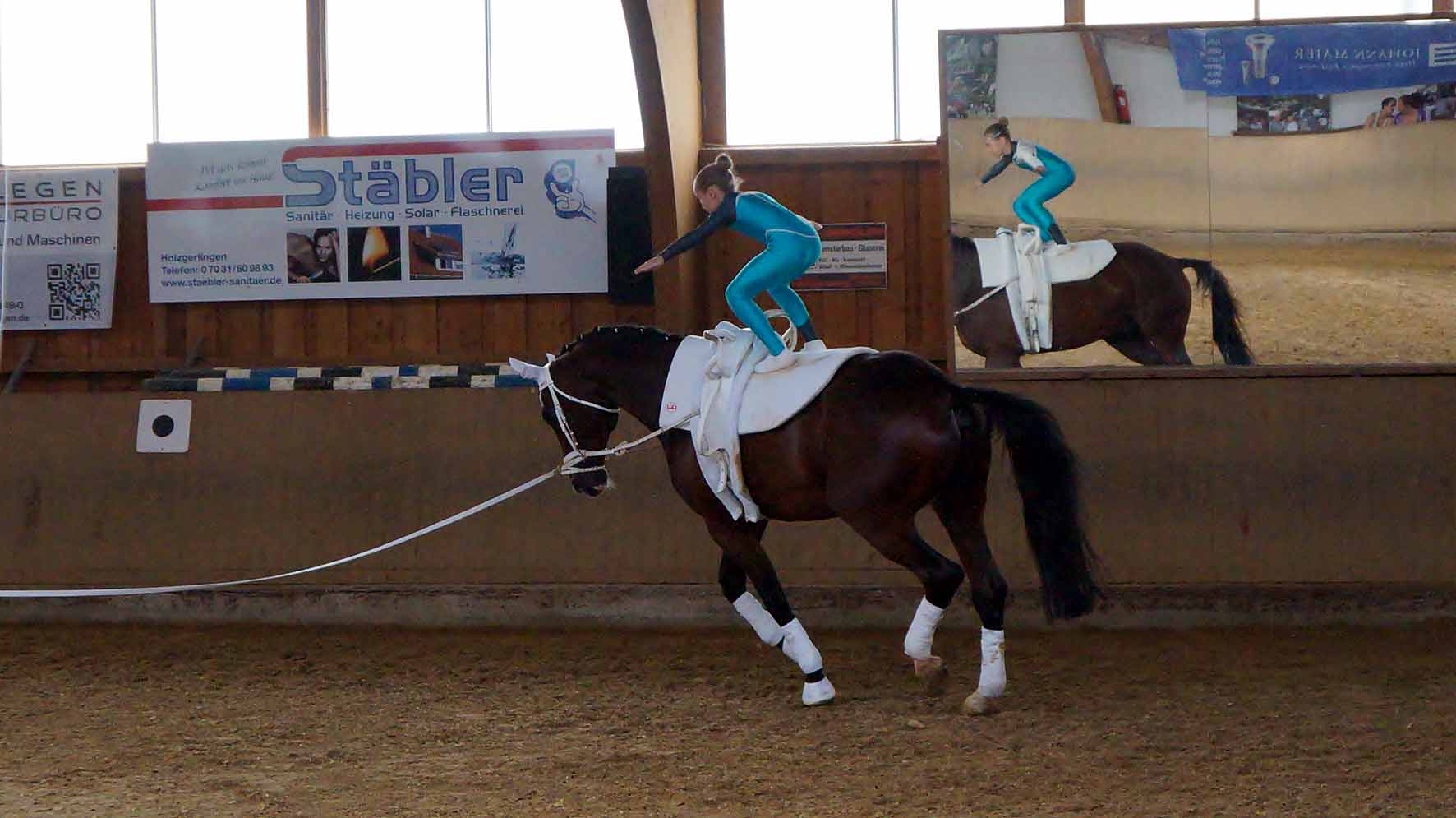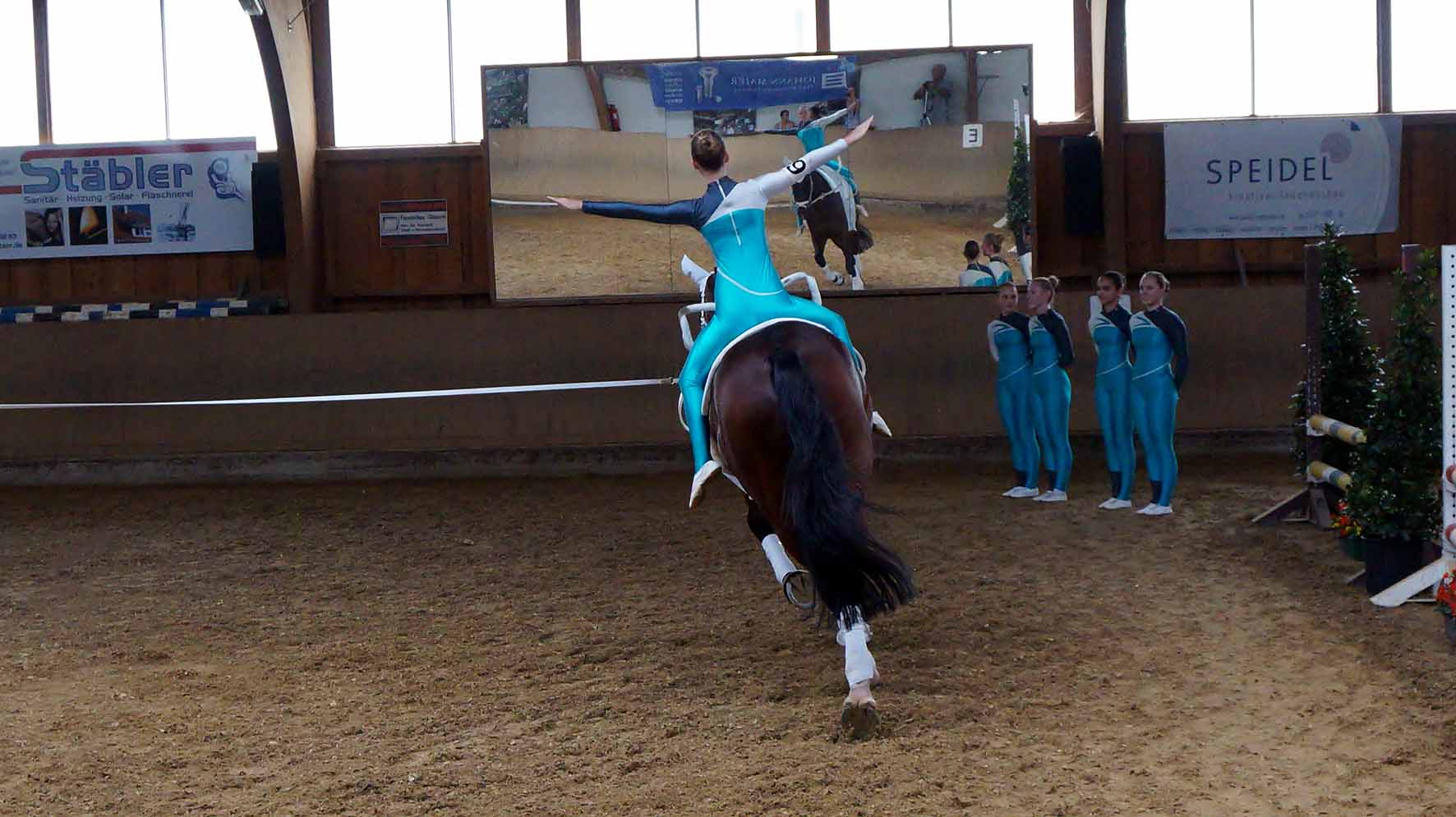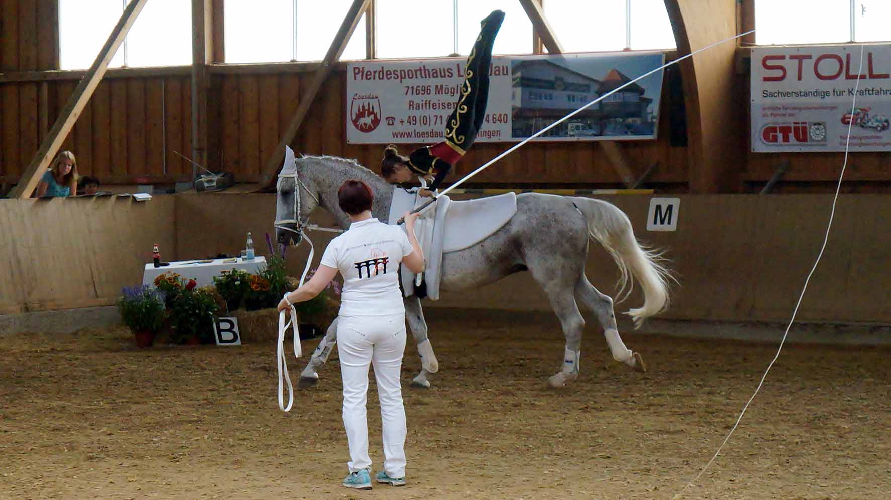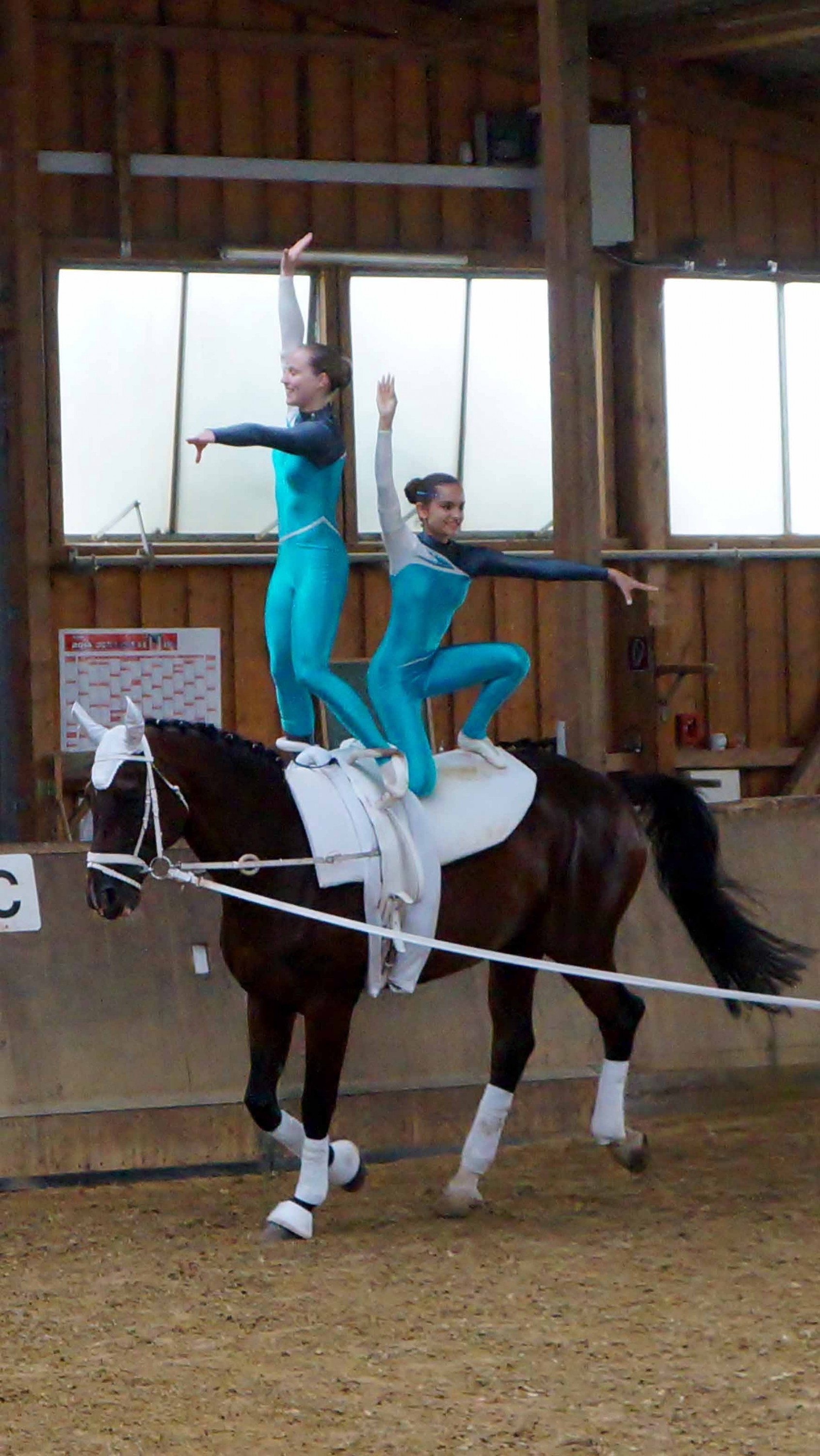 Den ersten Start hatte das M-Team mit Pflicht und Kür auf Carneol. Wir wurden wieder von Annett von den Juniors unterstützt, die ihren Job mal wieder absolut souverän gemeistert hat. Danke dafür, Annett! Da Pferd und Voltis fit und munter waren, waren wir schon mit unserer Pflicht zufrieden und konnten sehr gelassen und motiviert an die Kür gehen. Die Kür lief dann ebenso schön und ruhig durch, sodass wir das Turnier mit einem super Gefühl und einem 2. Platz (Wertnote 6,098) abschließen konnten. Luna hat sogar noch den Sonderpreis für die beste Pflicht bei den M-Teams bekommen!
