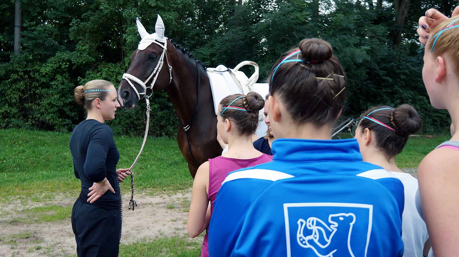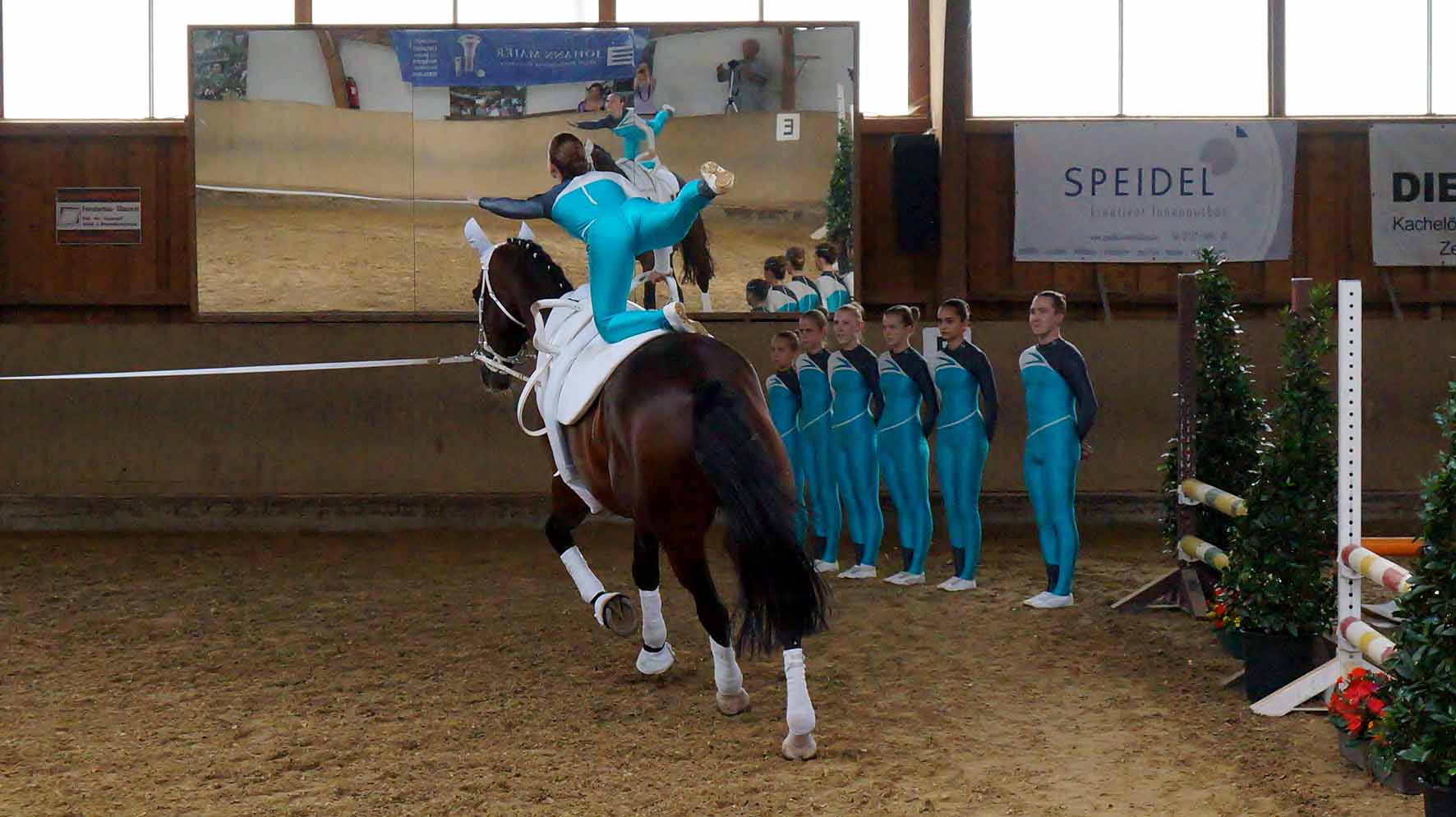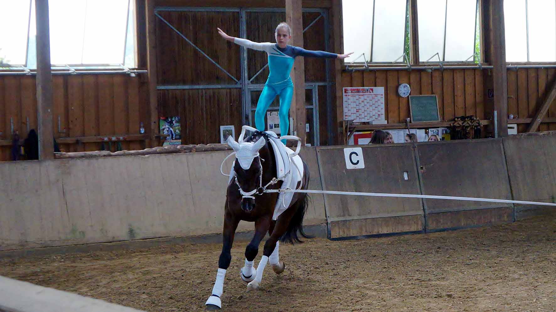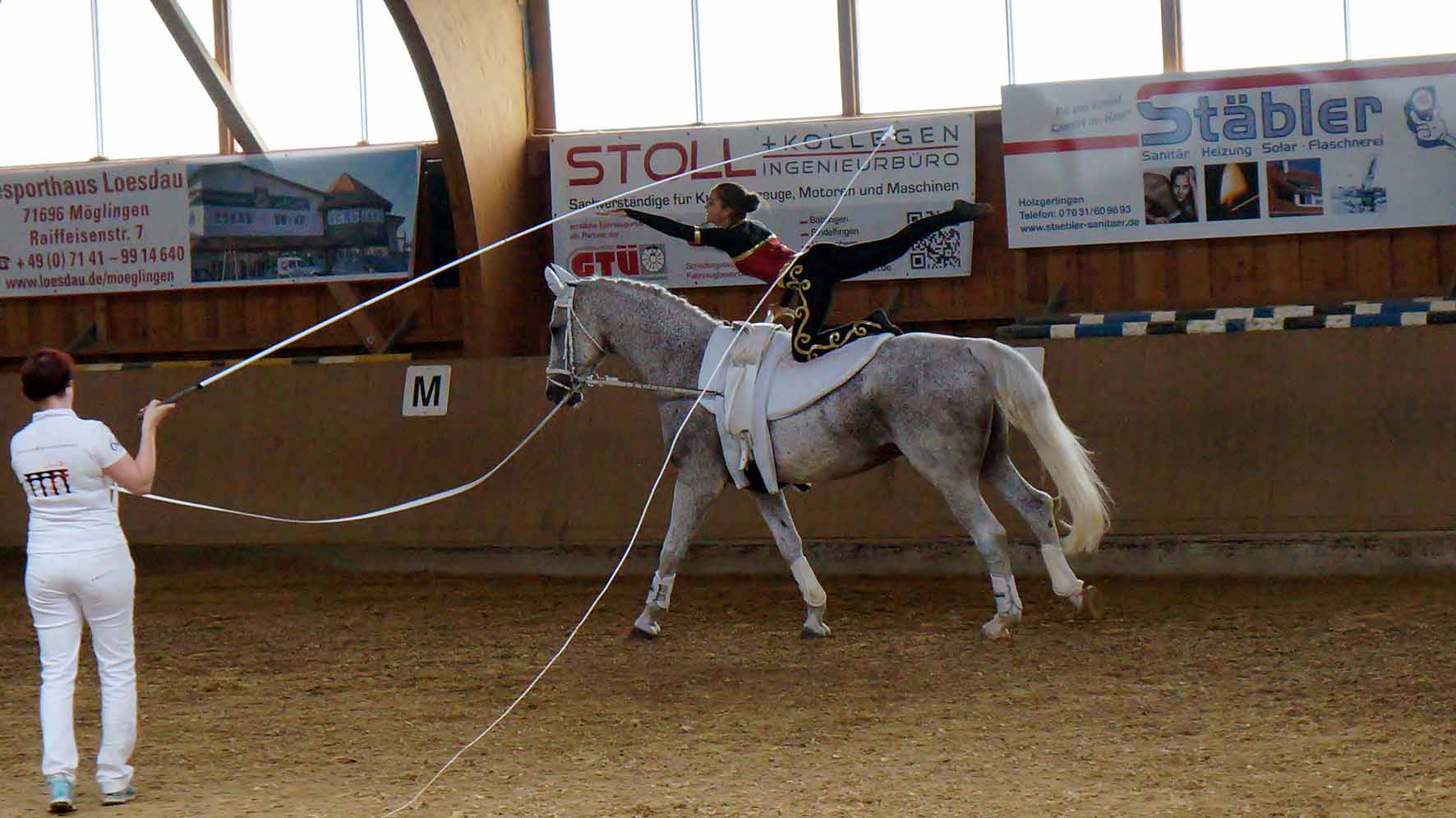 Den ersten Start hatte das M-Team mit Pflicht und Kür auf Carneol. Wir wurden wieder von Annett von den Juniors unterstützt, die ihren Job mal wieder absolut souverän gemeistert hat. Danke dafür, Annett! Da Pferd und Voltis fit und munter waren, waren wir schon mit unserer Pflicht zufrieden und konnten sehr gelassen und motiviert an die Kür gehen. Die Kür lief dann ebenso schön und ruhig durch, sodass wir das Turnier mit einem super Gefühl und einem 2. Platz (Wertnote 6,098) abschließen konnten. Luna hat sogar noch den Sonderpreis für die beste Pflicht bei den M-Teams bekommen!