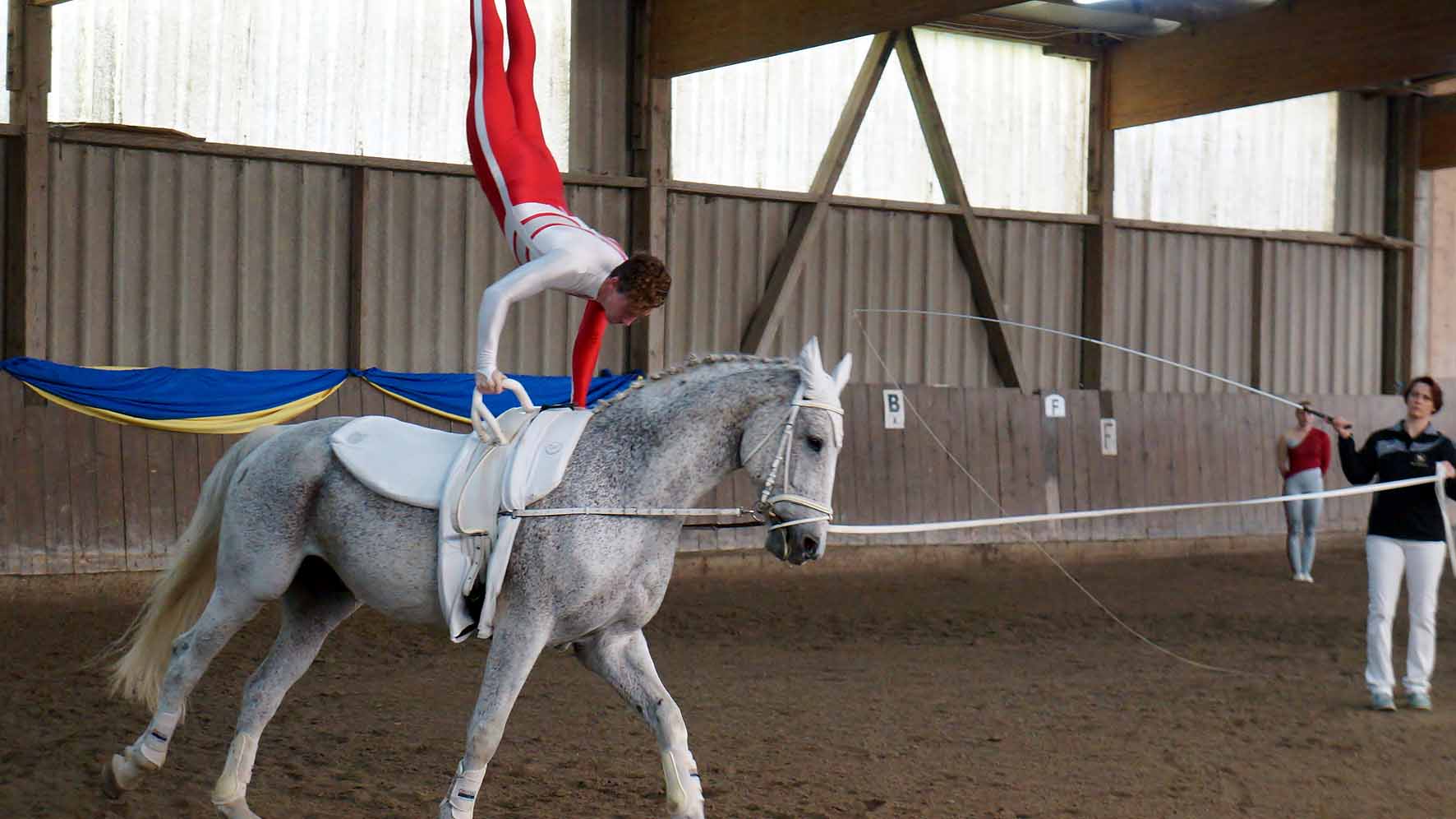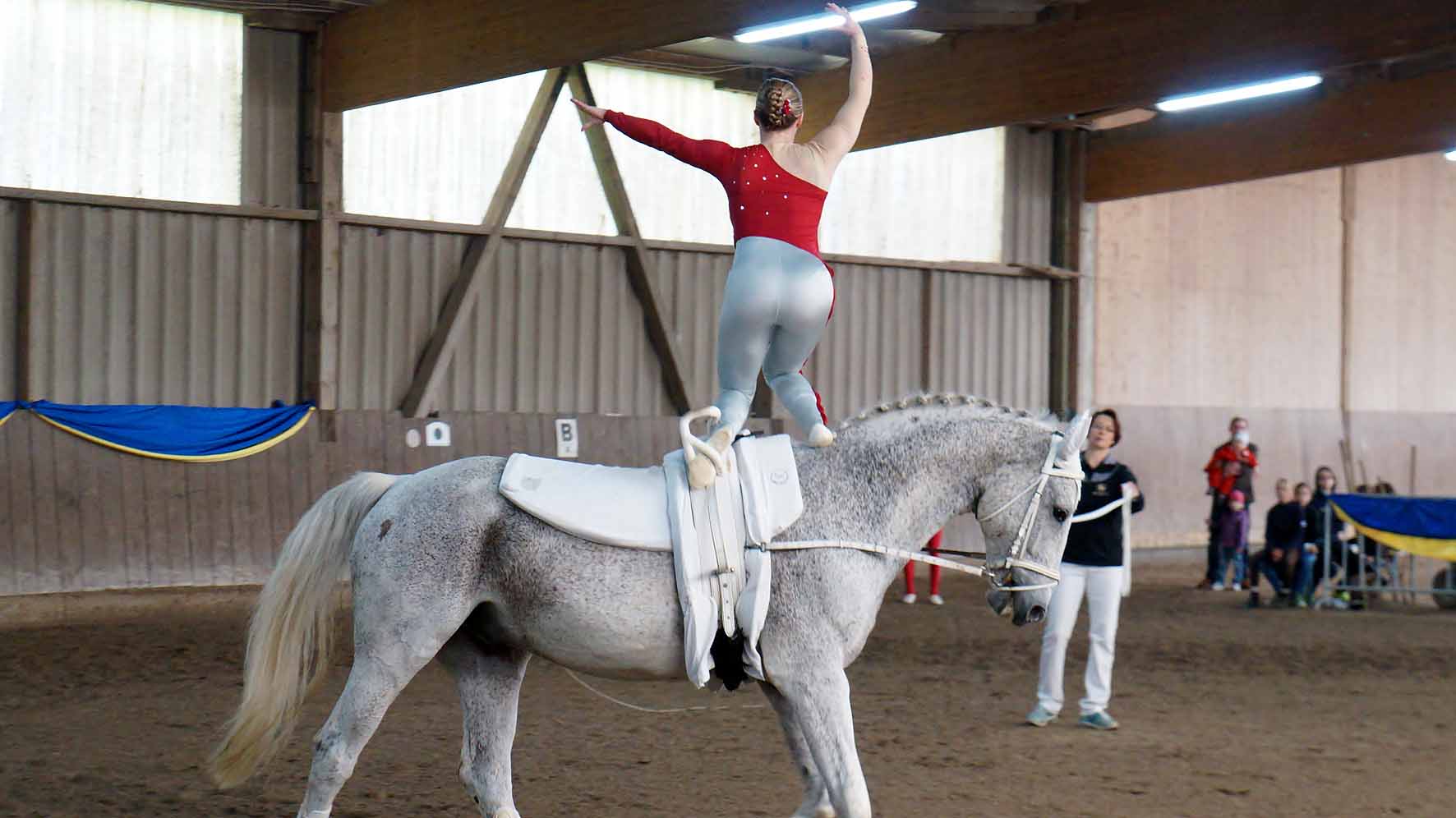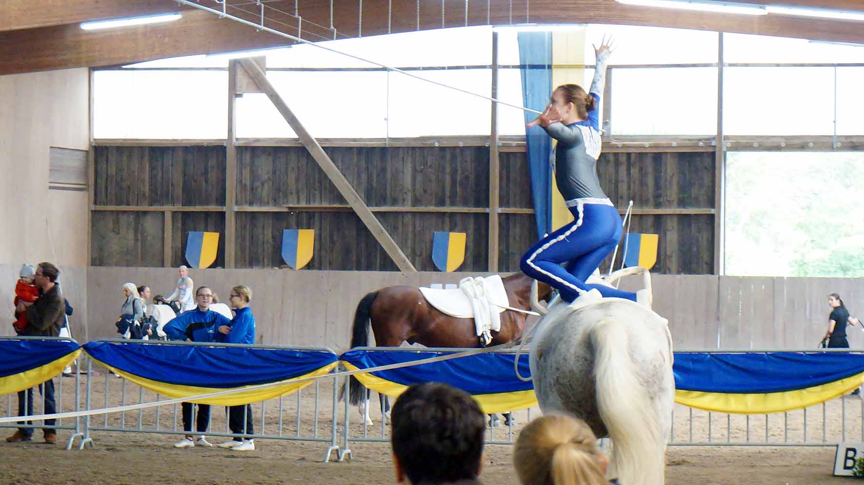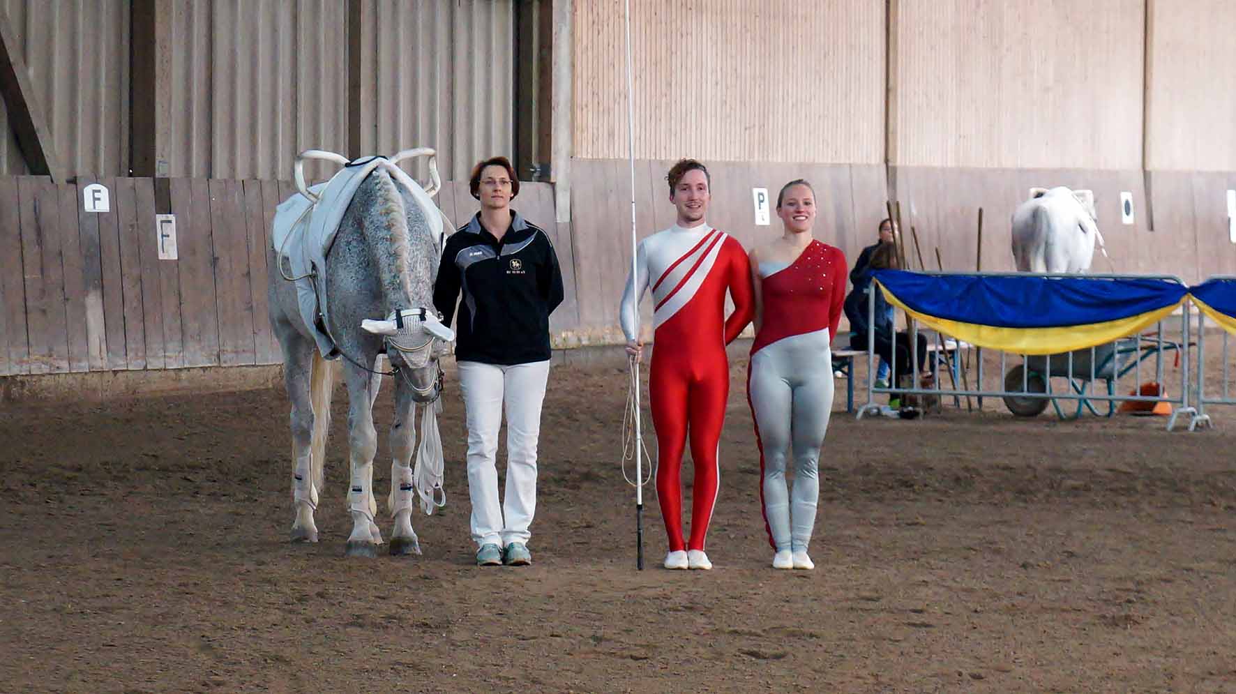 Den Anfang haben Carina und Tobi in der M-Prüfung gemacht. Carina konnte ihr Programm nochmal sehr sauber und gut ausgeführt zeigen und hat sich damit mit einer 6,7 den Sieg in dieser Prüfung gesichert. Tobi hatte in seiner Kür leider einen Sturz, den er aber schnell in einen Bodensprung umwandelte. Trotzdem hat es ihm noch mit einer 6,5 auf den 2. Platz gereicht.