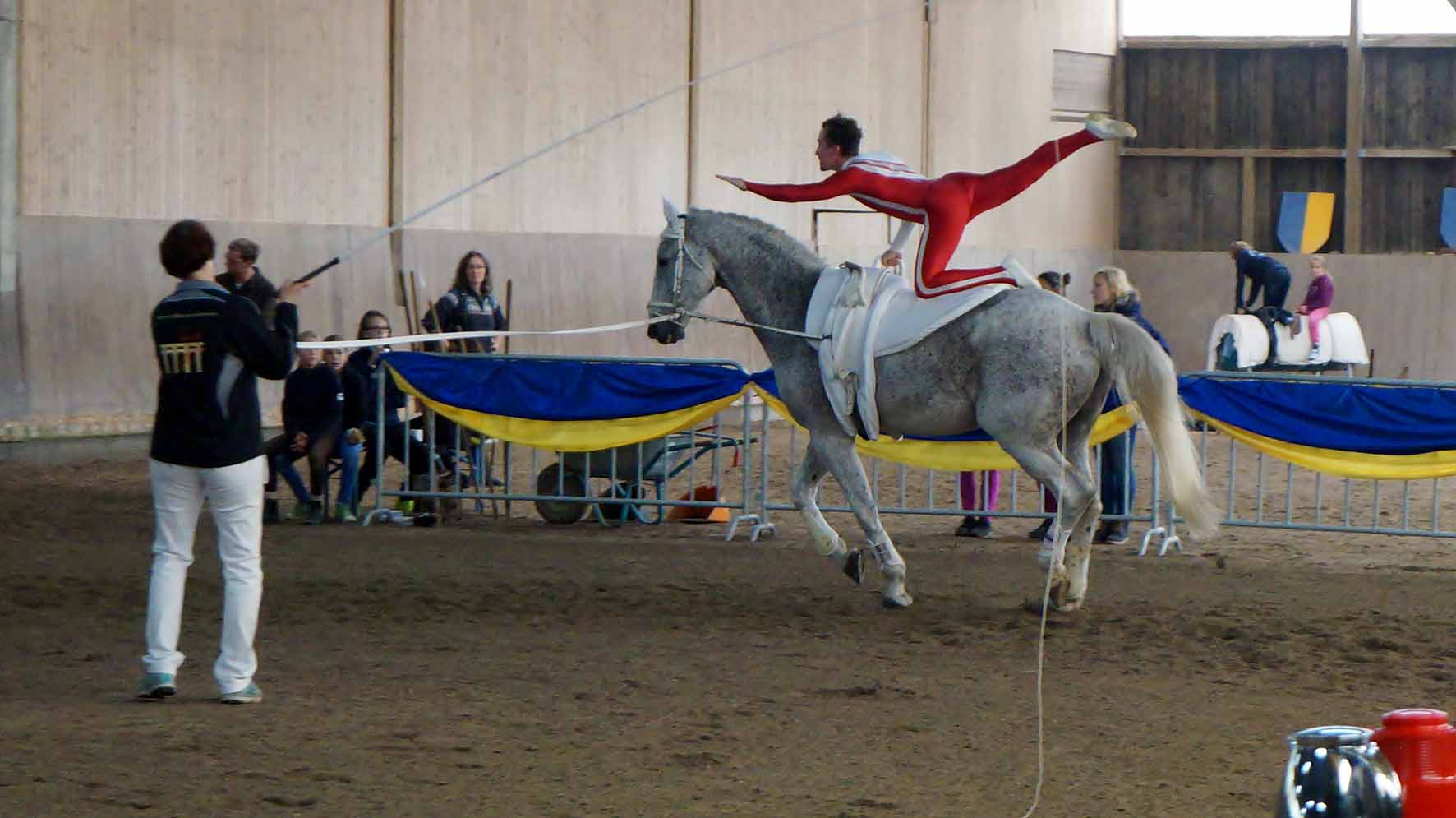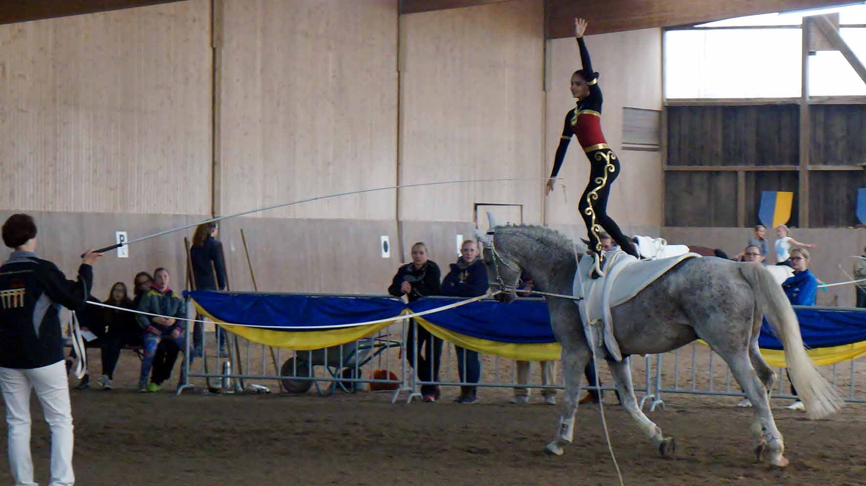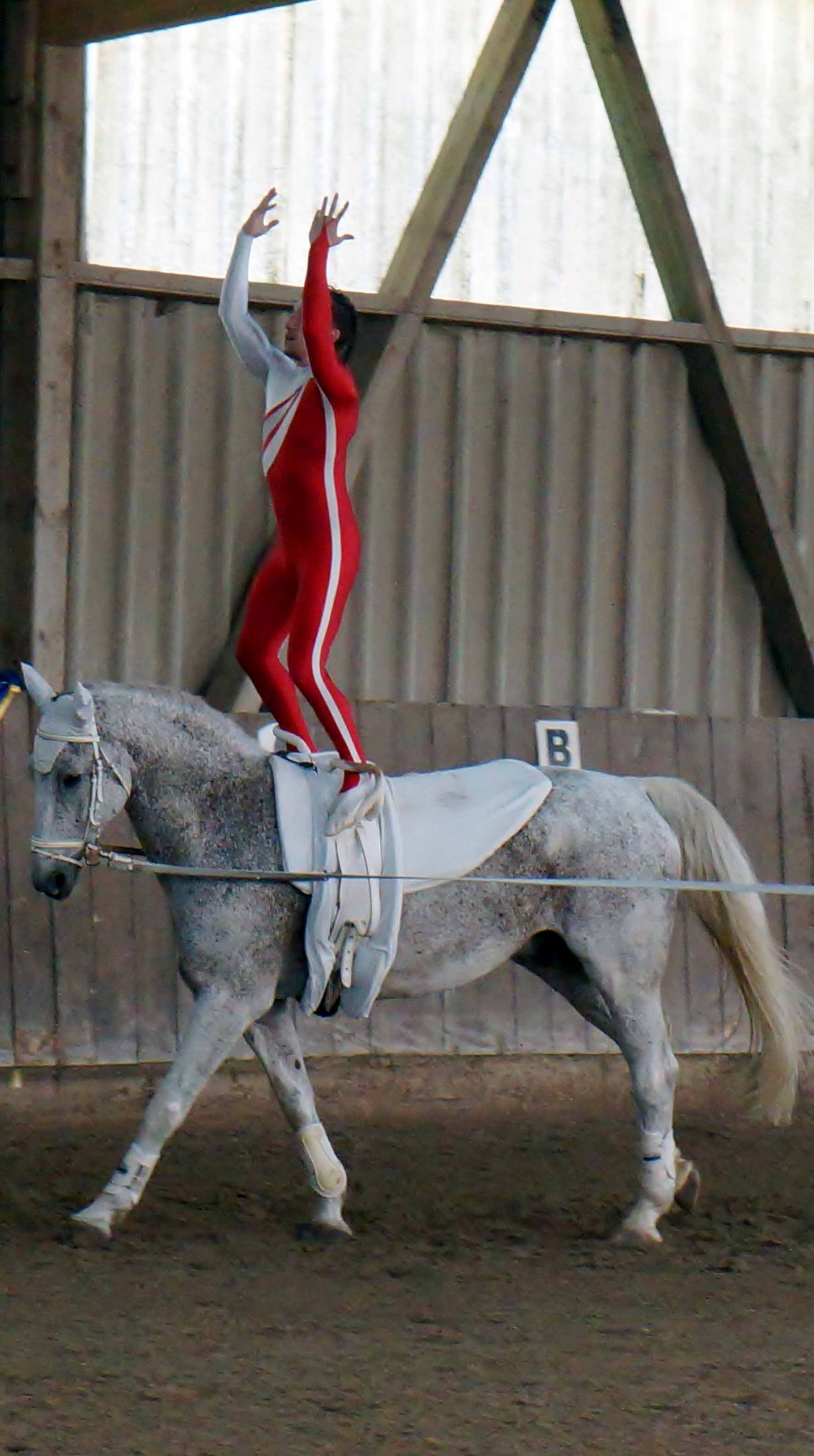 Die Starts selber liefen bis auf die üblichen Unsicherheiten im Stehen ziemlich gut durch und wir waren zufrieden mit unserer Leistung. In der Siegerehrung erreichten wir dann sogar den zweiten Platz, was uns sehr gefreut hat. Als Preis erhilten wir alle warme, selbstgestrickte Socken. Da kennt sich wohl eine Volti-Mama mit den kalten Wintern in der Reithalle aus ;-) Die werden bestimmt zum Einsatz kommen.
