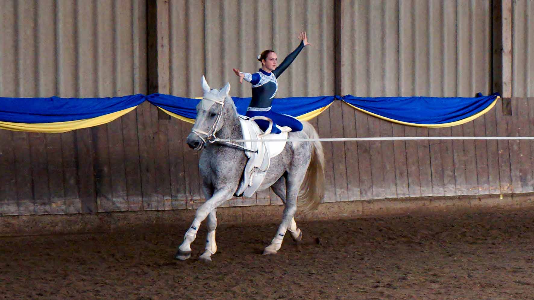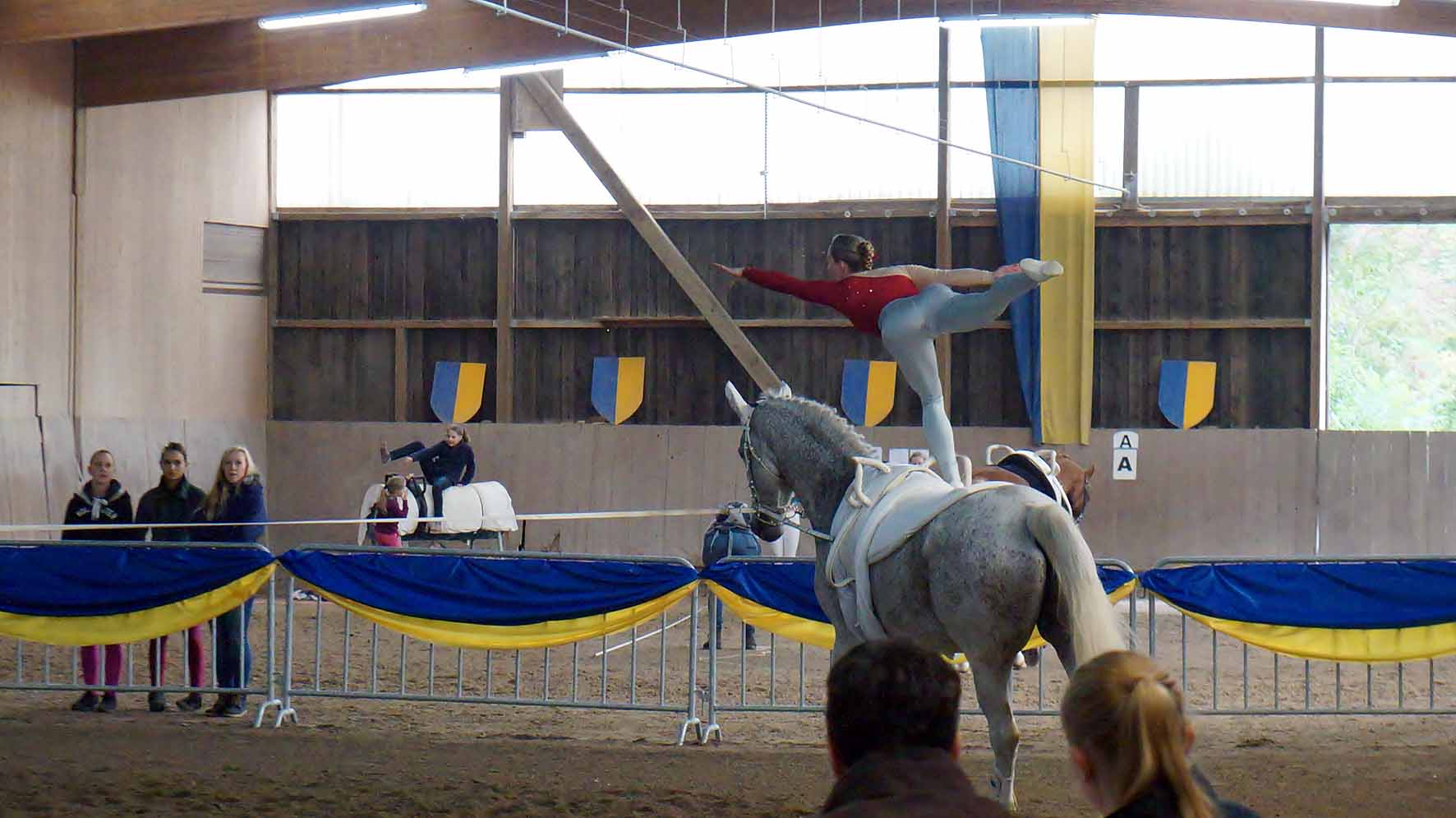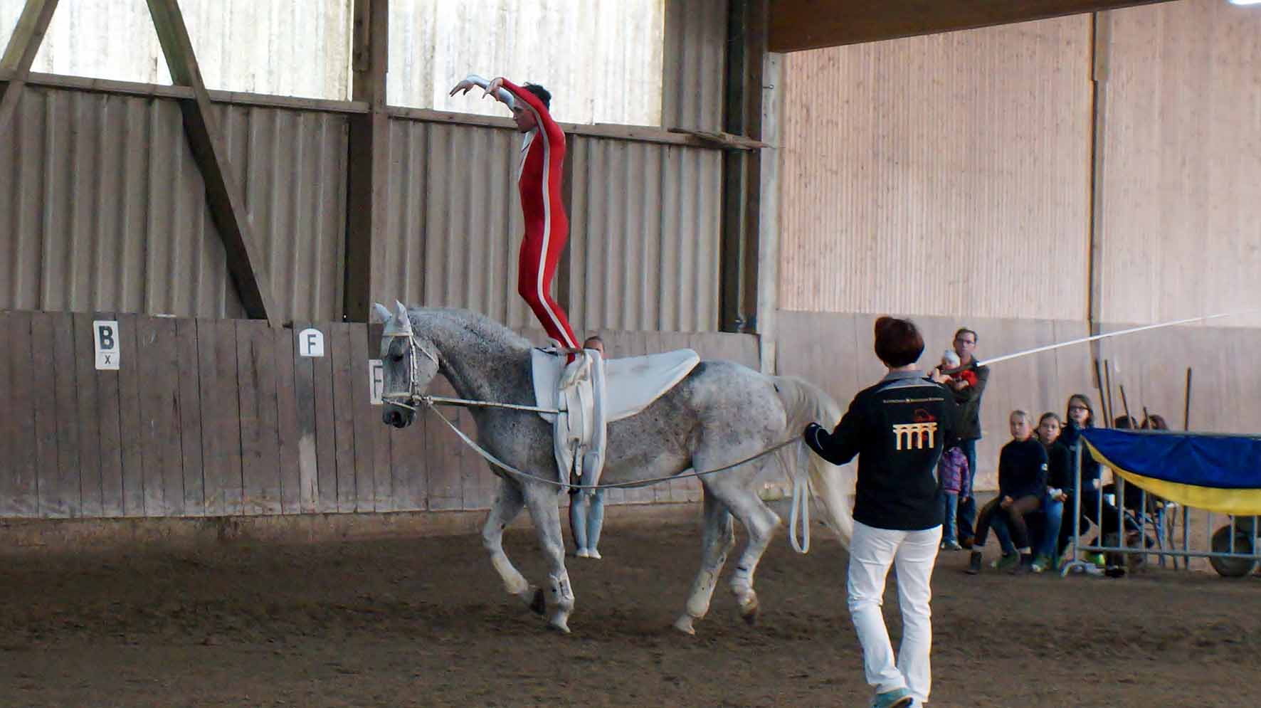 Die Starts selber liefen bis auf die üblichen Unsicherheiten im Stehen ziemlich gut durch und wir waren zufrieden mit unserer Leistung. In der Siegerehrung erreichten wir dann sogar den zweiten Platz, was uns sehr gefreut hat. Als Preis erhilten wir alle warme, selbstgestrickte Socken. Da kennt sich wohl eine Volti-Mama mit den kalten Wintern in der Reithalle aus ;-) Die werden bestimmt zum Einsatz kommen.