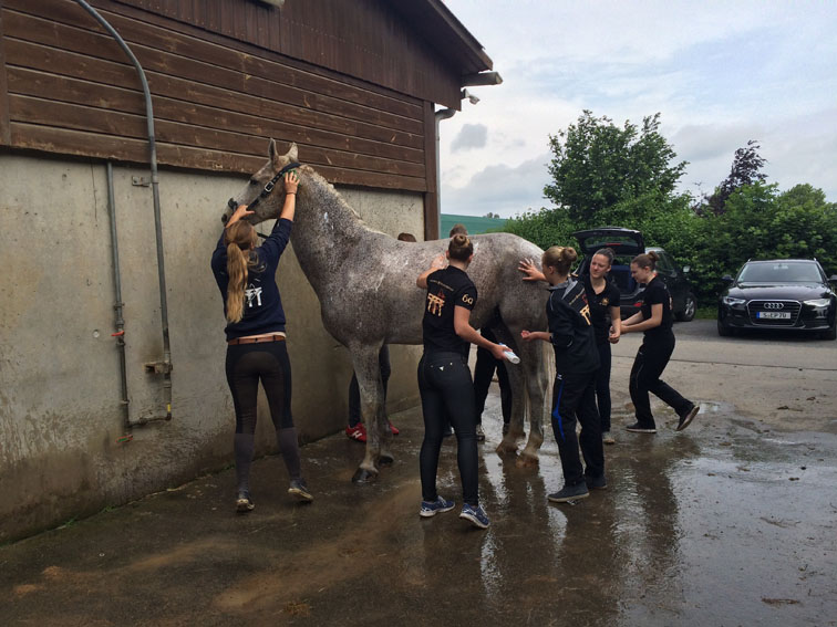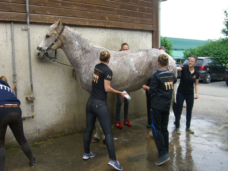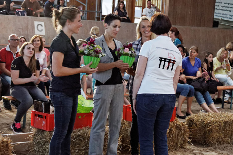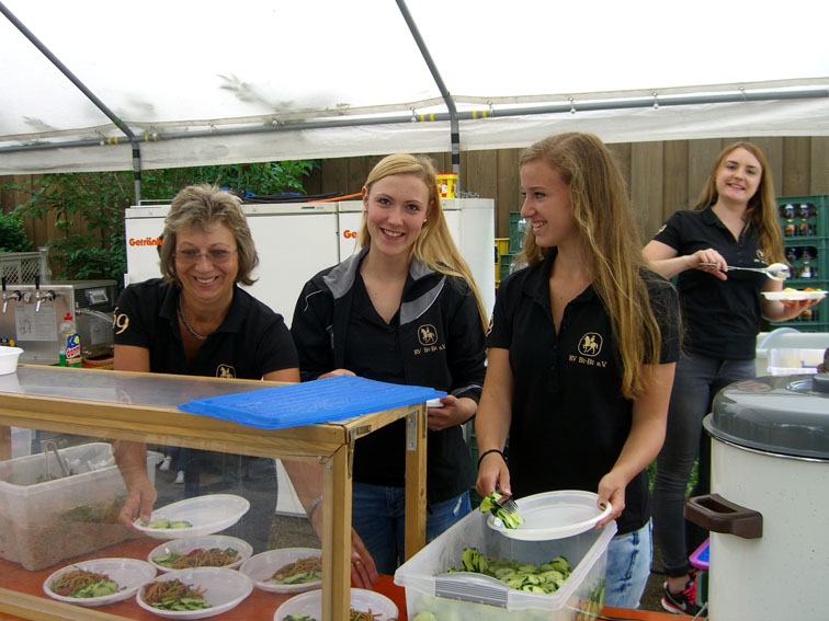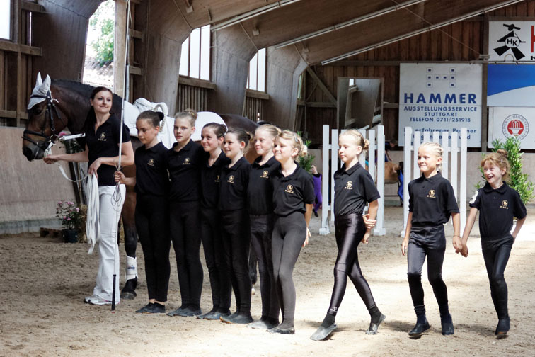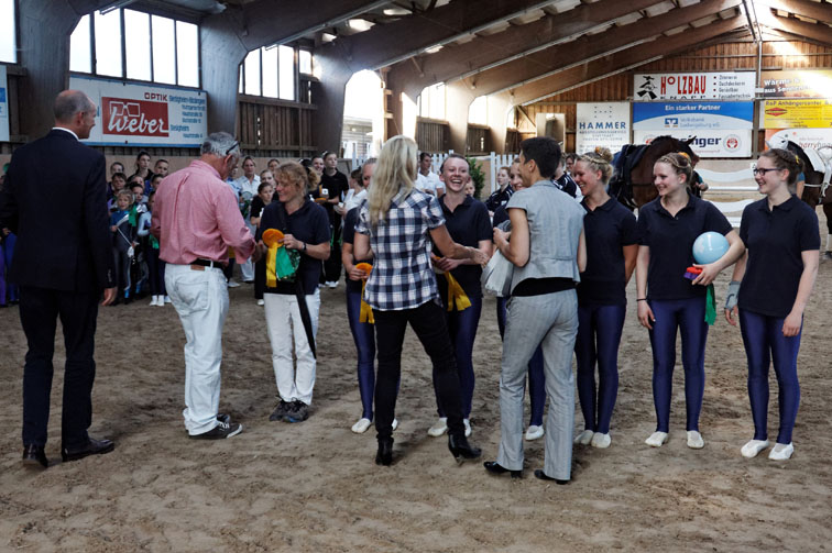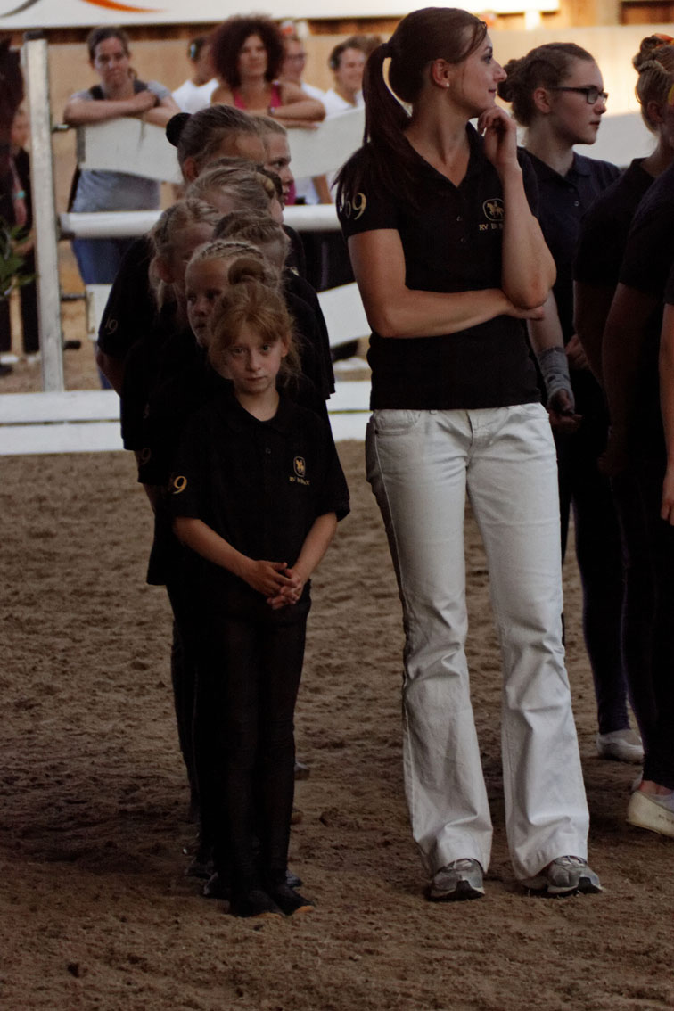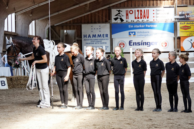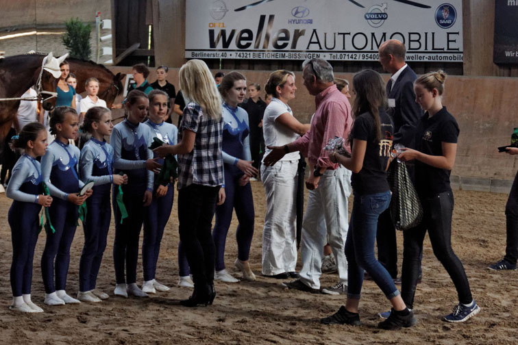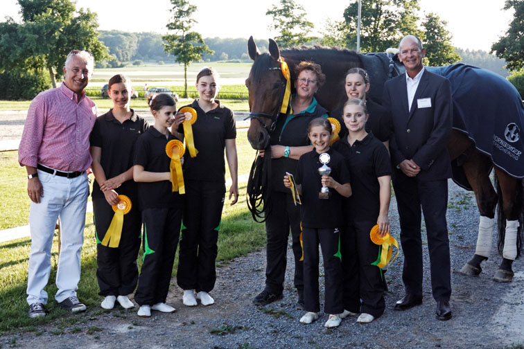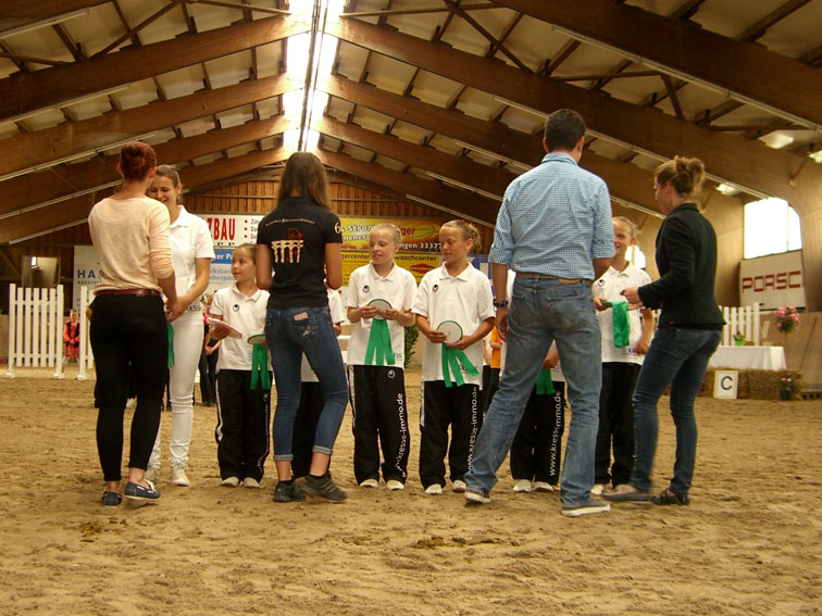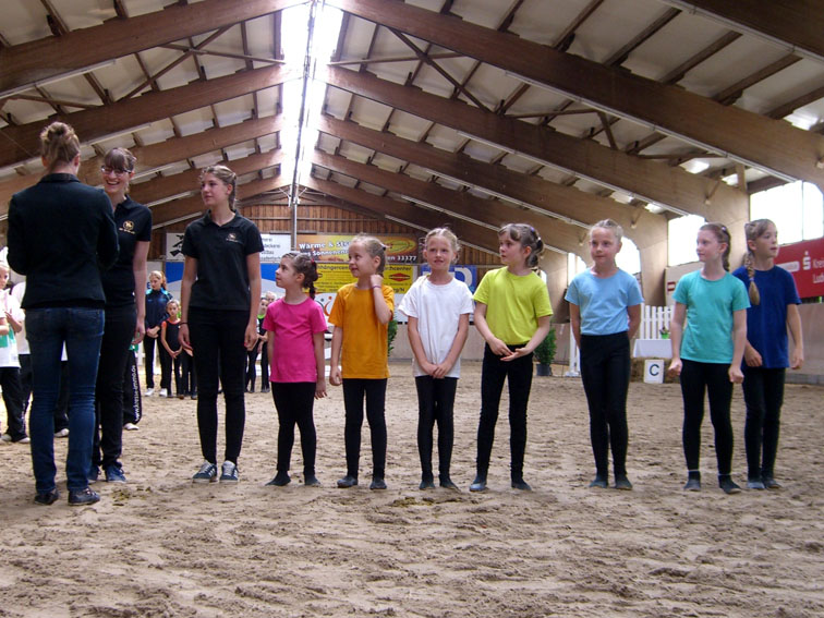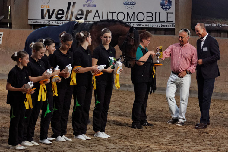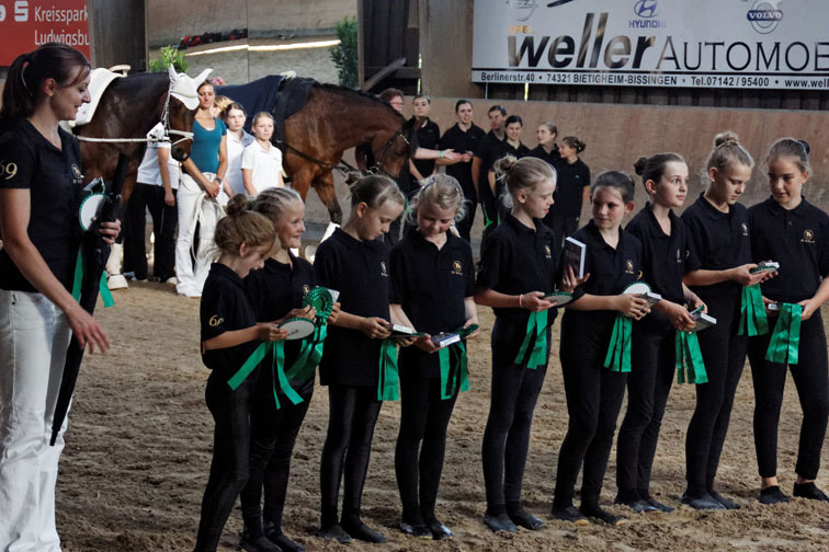 Während die erste Mannschaft des Vereins leider aufgrund ihres kranken Pferdes nicht starten konnte, genossen die anderen drei Mannschaften sichtlich ihren Start vor heimischer Kulisse. Die zweite Mannschaft (Klasse L) erreichte mit ganz vielen neuen Gesichtern in dieser Saison eine 5,1 (Platz 7), die dritte Mannschaft (Galopp/Schritt) eine 4,3 (Platz 4) und die vierte Mannschaft (Schritt/Schritt) eine 4,1 (Platz 3). Für viele Sportler war es der erste Turnierstart, den sie gleich toll gemeistert haben.