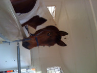 der Pechvogel hat Hufkrebs. Der Verein hat lange versucht ihn zu halten und viel Tierarztkosten und Zeit investiert weil er ein sehr zuverlässiges, braves Schulpferd mit Schwerpunkt schwache Reiter, Anfänger, Voltige und Therapeutisches Reiten war – leider vergeblich. Immer wieder hatte er Rückfälle. Verena Eng hat ihn übernommen und versucht mit viel persönlichem Einsatz ihn zu retten.