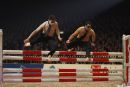 Ein „Schmankerl“, das diesjährige Rahmenprogramm des Pferdemarktturniers! Wir kommen in den Genuss von Sprungtalenten der etwas anderen Art. Nicht von vier, sondern lediglich von zwei Beinen werden die Hindernisse zum Showprogramm überwunden: Das dreiköpfige Horseman Team aus Frankreich beschert uns eine atemberaubende und kurzweilige Show. Das Spektakel begann vor etwa 15 Jahren als ein Riesenspaß zwischen Freunden (alles ehemalige Reiter), und keiner hätte je daran gedacht, dass es einmal so eine Erfolgsgeschichte werden würde. Mittlerweile gehören rund 10 Mitspringer dem Team an.