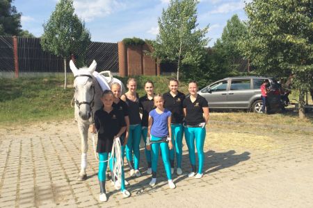 Sina Kemker, Muriel Birnbaum, Jana Mertins, Amela Riewerts als „Superhelden“, Mannschafts A-Dressur, 2. Platz