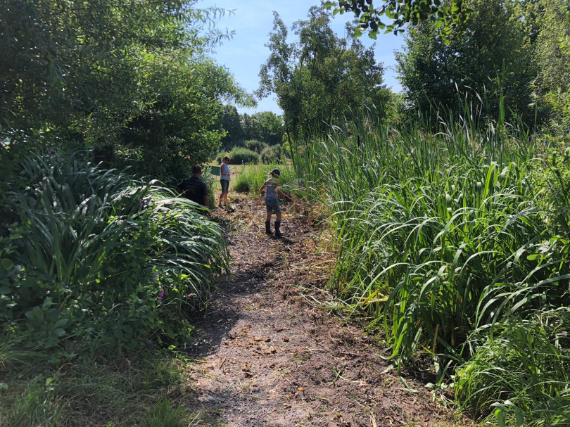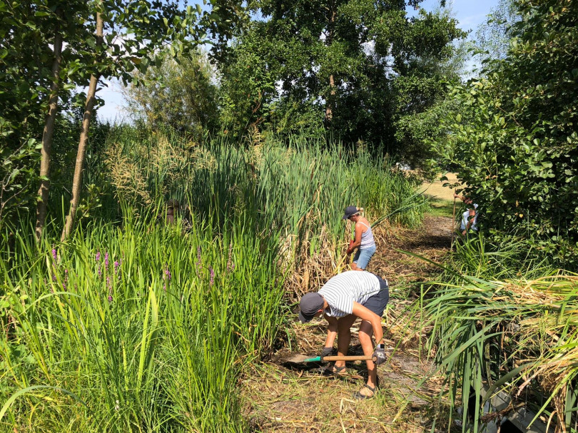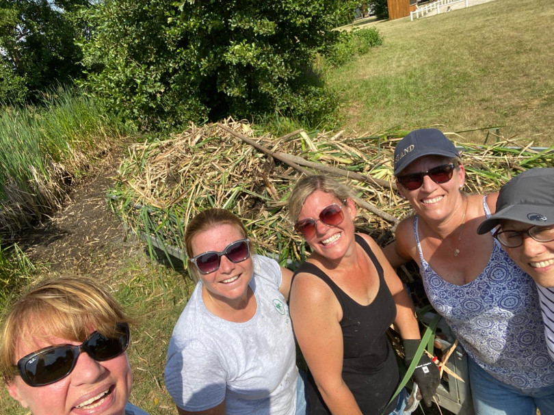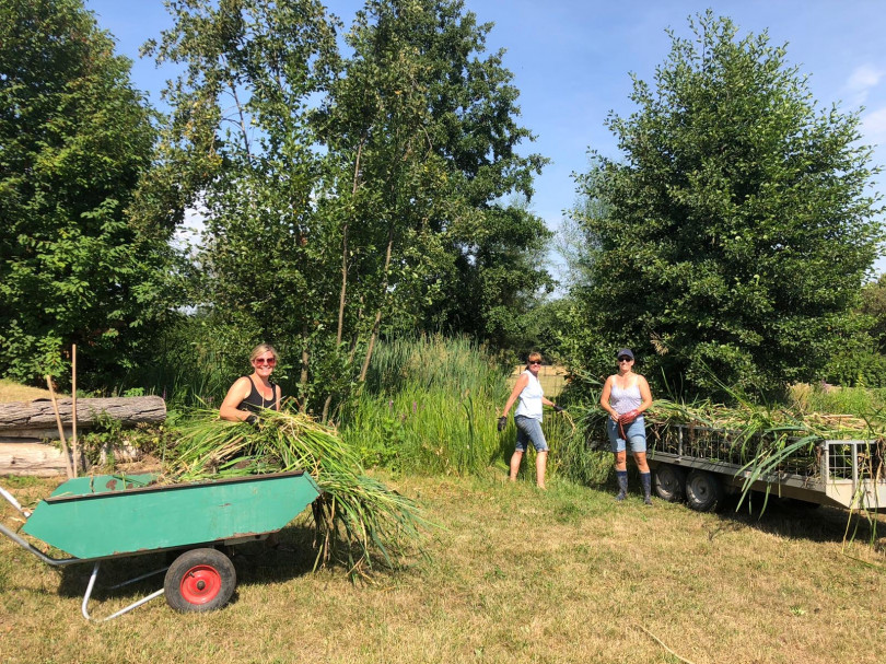 bei dieser Hitze ist der Teich leer - eine willkommene Gelegenheit den Bewuchs zu bändigen und den Teich in Form zu bringen - es scheint Spaß gemacht zu haben ;)