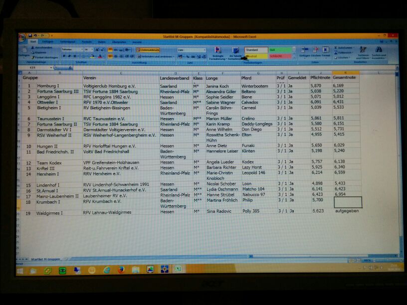 Da das bei uns schon die dritte Verletzung innerhalb von 2 Monaten ist, sind wir so langsam dann auch wirklich an unsere Nerven- und Kapazitätsgrenzen angelangt. Da das Juniorteam ohne Lotta und Leo sowieso nicht starten kann, haben wir nun mit Annett auch das komplette Juniorteam ins M-Team integriert. Also wieder neu planen, Kürpositionen tauschen und verändern und los gehts. Danke Annett, dass du so flexibel und mutig ;-) warst dich uns anzuschließen!