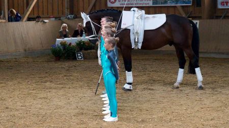 Den ersten Start hatte das M-Team mit Pflicht und Kür auf Carneol. Wir wurden wieder von Annett von den Juniors unterstützt, die ihren Job mal wieder absolut souverän gemeistert hat. Danke dafür, Annett! Da Pferd und Voltis fit und munter waren, waren wir schon mit unserer Pflicht zufrieden und konnten sehr gelassen und motiviert an die Kür gehen. Die Kür lief dann ebenso schön und ruhig durch, sodass wir das Turnier mit einem super Gefühl und einem 2. Platz (Wertnote 6,098) abschließen konnten. Luna hat sogar noch den Sonderpreis für die beste Pflicht bei den M-Teams bekommen!