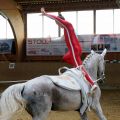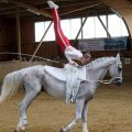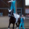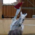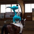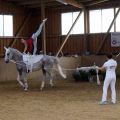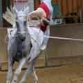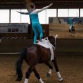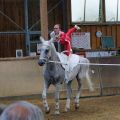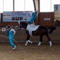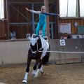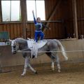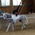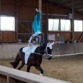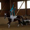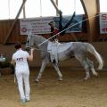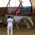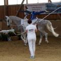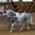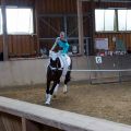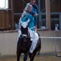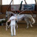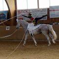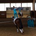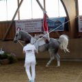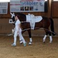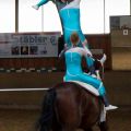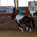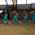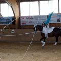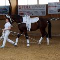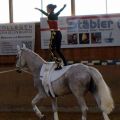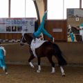 Nachmittags gings dann sofort mit unseren Einzeln weiter. Carina, Luna, Becci und Tobi starteten alle mit Romeo im M-Einzel. Romeo war leider schon in der ganzen Vorbereitung angespannt und nervös. Im Turnierzirkel ist er dann aber sehr brav durchgelaufen, auch wenn er dabei verkrampft war. Mit ein bisschen mehr Erfahrung wird er aber bestimmt auch auf den Turnieren bald die Gelöstheit zeigen können, die er im Training hat. Die Einzelstarts selber liefen ruhig und sicher durch. Carina erreicht mit einer 6,660 den 2. Platz, Luna und Tobi teilten sich mit einer 6,526 den 3. und Becci erreichte eine 6,340 und damit den 6. Platz. Luna konnte auch bei den M-Einzeln den Sonderpreis für die beste Pflicht einheimsen!