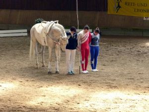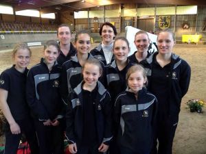 Aber es hat sich gelohnt! Der Mannschaft gelang ein richtig sauberer Wohlfühlstart. Um Romeo in seinem ersten Jahr nicht zu überfordern, haben wir auf schwierigere Elemente in der Kür verzichtet und uns vor allem auf die Ausführung konzentriert. Und der Plan ist aufgegangen: Genauso ruhig und ordentlich wie das Pferd, haben auch die Voltigierer ihr Programm durchgezogen. Wir haben uns einfach so richtig gefreut! Vor allem, als dann auch noch die Wertnote bekannt wurde: eine 6,0!! Die beste Note, die wir überhaupt jemals erreicht haben, sicherte uns den 5. Platz. Und das auf einer Sichtung für die deutschen Juniorenmeisterschaften!