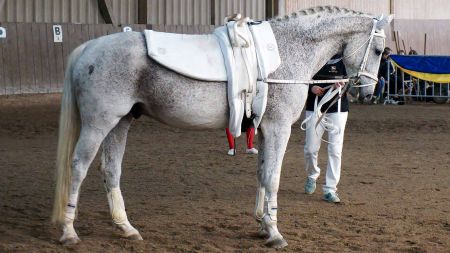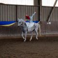 Die Starts selber liefen bis auf die üblichen Unsicherheiten im Stehen ziemlich gut durch und wir waren zufrieden mit unserer Leistung. In der Siegerehrung erreichten wir dann sogar den zweiten Platz, was uns sehr gefreut hat. Als Preis erhilten wir alle warme, selbstgestrickte Socken. Da kennt sich wohl eine Volti-Mama mit den kalten Wintern in der Reithalle aus ;-) Die werden bestimmt zum Einsatz kommen.