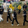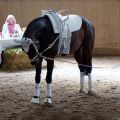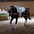 Als nächstes starteten unsere Einzel Carina, Luna, Becci und Tobi ebenfalls auf Romeo. Die absolute Besonderheit dabei: Dieses Mal konnten wir wirklich alle vier zusammen einlaufen! Nachdem sonst fast immer nach Leistungsklassen getrennt wird, haben wir uns darüber richtig gefreut. Und auch wenn Romeo in der Vorbereitung und ganz kurz am Anfang der Prüfung ein bisschen zickig war, lief danach alles gut. Carina und Luna haben sich mit den Wertnoten 6,8 und 6,5 den ersten und zweiten Platz bei den M-Einzeln gesichert, Tobi und Becci mit 6,9 und 6,6 den ersten und achten Platz bei den L-Einzeln. Tobi und Becci haben damit auch den Aufstieg nach M geschafft! Tolle Leistung!