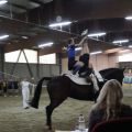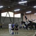 Nach der Siegerehrung tauschten Hagrid und Comic die Plätze und Comic durfte sich nun auf dem Hänger entspannen, während Hagrid auf seine Arbeit vorbereitet wurde. Das M-Team turnte eine fantastische Pflicht, ohne auch nur die kleinsten Patzer. Klasse! In der L-Einzel Prüfung mit Tobi lief (fast) alles perfekt. Häggi lief spitze und Tobi turnte eine nahezu perfekte Kür zu einem "Carina-Medley". Nach einer etwas längeren Pause für Pferd und Voltis zeigte das M-Team ihre Kür. Auch hier, kaum merkliche Fehler. In der Siegerehrung belegte Tobi mit einer Wertnote von 6,488 den 2. Platz. Ganz knapp an der Aufstiegsnote vorbei... Beim nächsten Mal schaffst du es! Das M-Team erreichte eine 6,055 und damit den 1. Platz. Mit etwa 0,3 Punkten Vorsprung war das ein super Ergebnis für die Meisterschaftswertung am nächsten Tag.