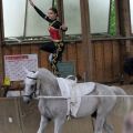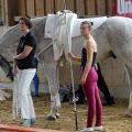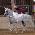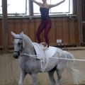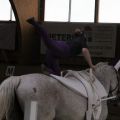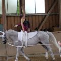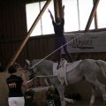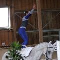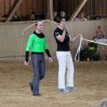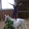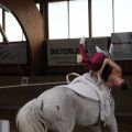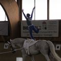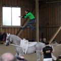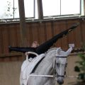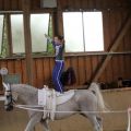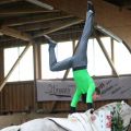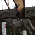 Den Anfang haben die Einzelvoltigierer am Samstag auf Romeo gemacht. Ganz zufrieden konnten wir abgesehen von Tobi mit unseren Leistungen nicht sein. Jeder hatte Patzer oder sogar einen Sturz drin, die Leichtigkeit hat leider etwas gefehlt. Das geht auf jeden Fall noch besser!