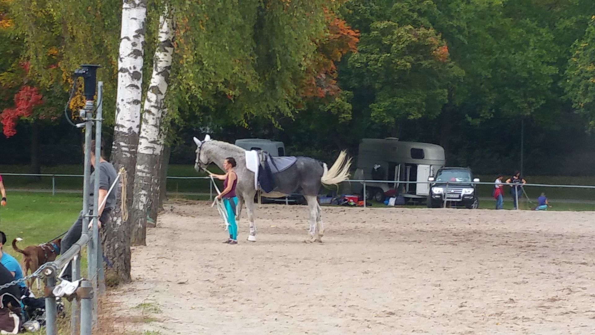 Nun musste sich das L-Team für die Pflicht vorbereiten. Da auf Romeo am Vortag nicht voltigiert werden konnte war die Erleichterung groß, dass er für sie laufen konnte. Und auch im Turnierzirkel lies er das L-Team vorerst nicht im Stich. Die Pflicht lief besser denn je und das zeigten auch die Wertnoten.