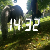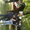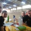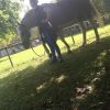 Da sie sich sehr viel Zeit zum Verladen eingeplant hatten, waren sie früher in Nordheim als gedacht. Gemeinsam schauten sie sich noch die letzten Starter der Prüfung vor der Mittagspause an. Dann musste das M-Team auch schon Carneol richten und ihn führen. Leider wollte Romeo nicht alleine im Hänger stehen bleiben und bevor er den Hänger in seine Einzelteile zerlegt, durfte er ein bisschen grasen.