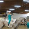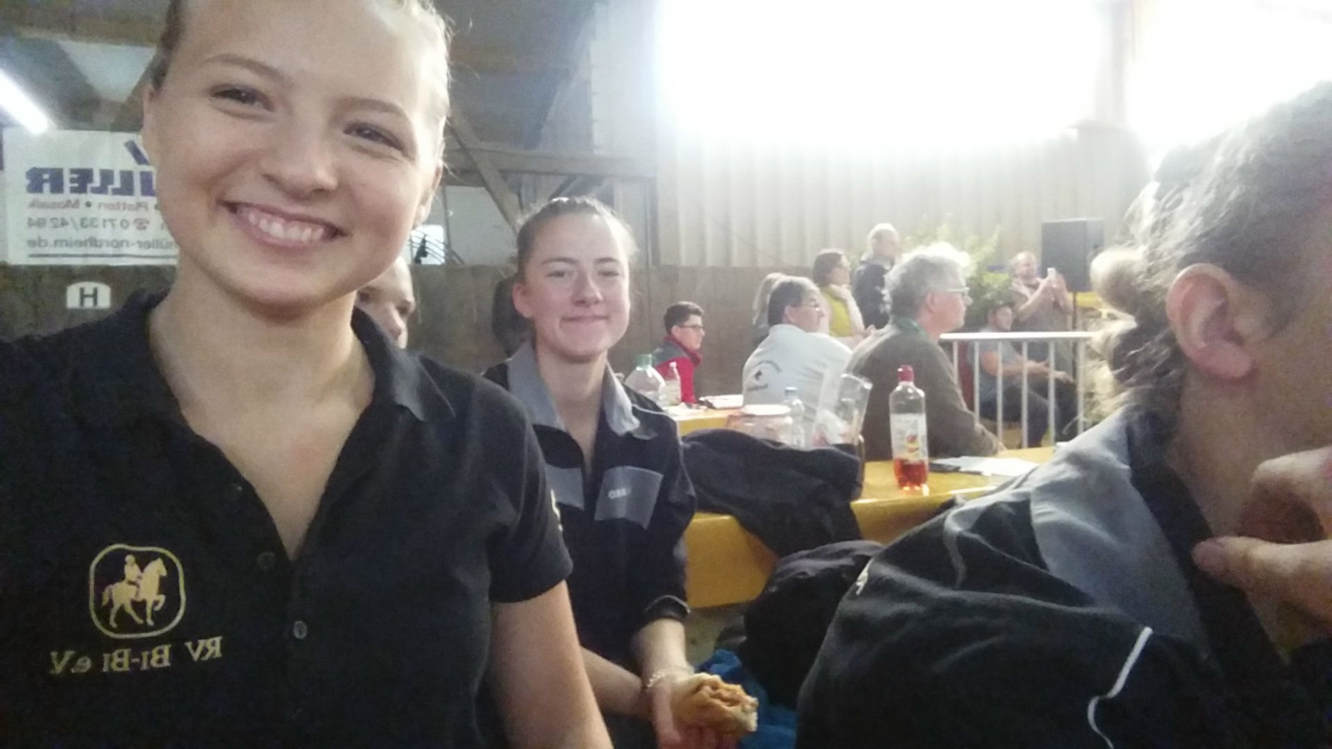 Der Samstag begann für beide Teams um 10:30 Uhr im Stall. Dort wurden die Pferde geputzt und eigeflochten und die Voltis machten sich ihre Frisuren und bereiteten sich schon Mental auf ihr anstehendes Turnier vor. Carneol macht dieses mal auch keine Probleme beim Verladen und auch Romeo trottete brav in den Hänger.