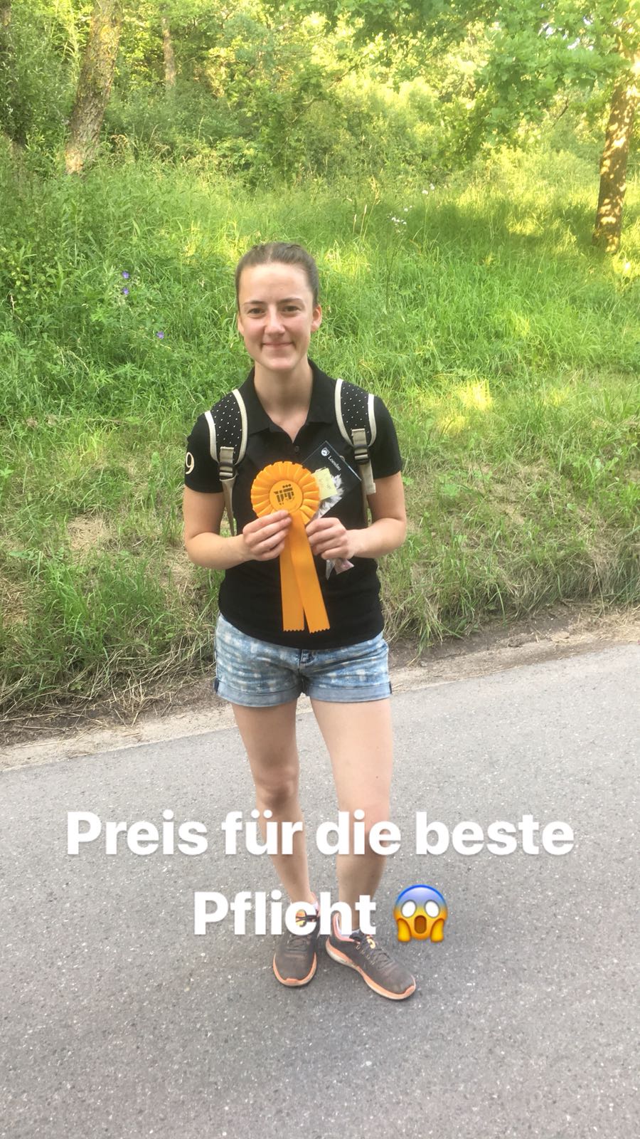 Bei der Siegerehrung wurden sie "überraschenderweise" erster mit einer 4,703. Wirklich überrascht war Beli, die den Preis der besten Pflicht erhielt. Sie verluden Romeo und verstauten alles im Hänger. Im Stall wurde dann alles noch verstaut, und schon war ein weiterer Turniertag vorbei.