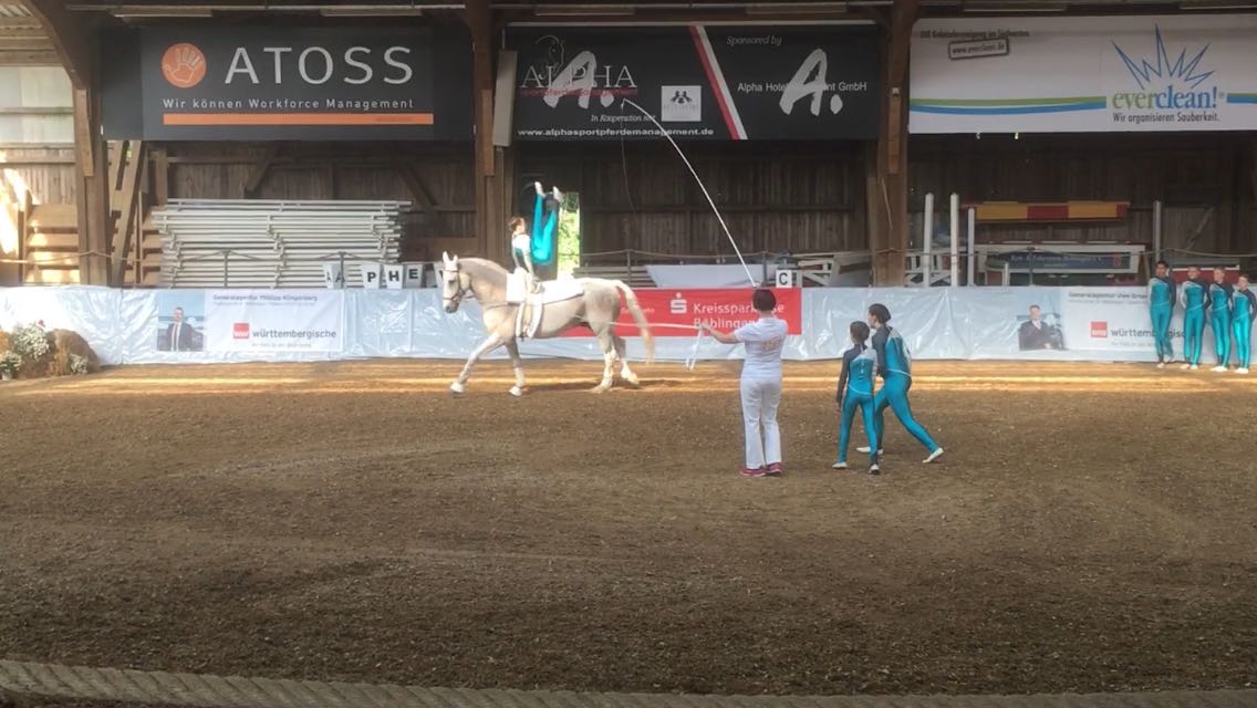Dann wurden noch eifrig Bilder gemacht, sogar recht witzige. Und schon war es an der Zeit Romeo zu richten. Dabei realisierten sie erst das sie den 1. Platz sich schon gesichert hatten, da sie die einzigen waren die in der Prüfung antraten. Daraufhin mussten sich auch die Voltis aus den Shorts in die Voltisachen quälen, was bei der Hitze nicht angenehm war. Trotz den hohen Temperaturen mussten sie sich warm machen und natürlich auch abvoltigieren.