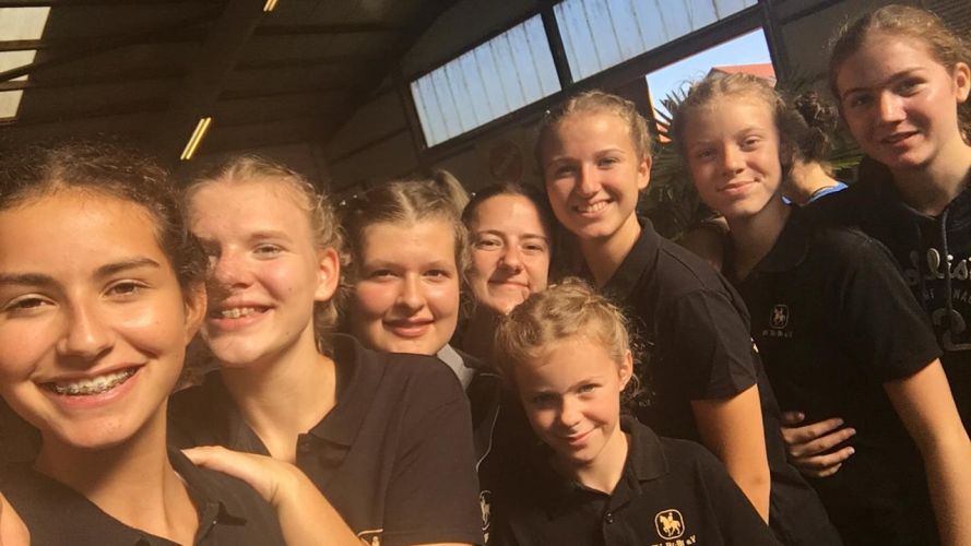 Am Samstag traf sich das L-Team um 7 Uhr im Stall um alles fertig für die Abfahrt zu machen. Leider konnte Charlotte auf Grund einer starken Erkältung dieses Turnier nicht mitstarten, um aber auf sie nicht komplett verzichten zu müssen sprang Netti kurzfristig für sie ein. Erst am Freitag davor stand dies fest, worauf sie spontan noch in die Kür eingebaut wurde. Sie flochten sich die Haare und auch Romeo bekam seine Turnierfrisur verpasst. An ihm musste außerdem der Dreck noch ordentlich abgeschrubbt werden, halt ein Nachteil eines Schimmels. Doch auch das hatte das Team gemeinsam Ruck Zuck erledigt, vor allem da sie Sarah als Unterstützung begleitete. Um 8:15 konnte die Kolonne aus Hänger uns Auto voller Voltis den Hof verlassen. Nur eine halbe Stunde später waren sie schon in Ilsfeld angekommen. Die Pflicht startete um 10 Uhr. Davor wurde alles routinemäßig vorbereitet und auch das warm machen wurde nicht ausgelassen. Mit der Kür waren sie alle sehr zufrieden. Exakt eine Stunde später stand das Team erneut im Turnierzirkel um ihre Kür zu präsentieren. Das Team war leider - auf Grund ein paar Patzern - nicht zu 100% zufrieden mit sich. Eigentlich konnten sie aber stolz auf sich sein, da es wirklich nur kleine Wackler waren. Direkt im Anschluss war die Siegerehrung der L- und M-Teams. Mit einer 5,627 konnte sich das Team den 4. Platz erkämpfen. Wir sind stolz auf euch.