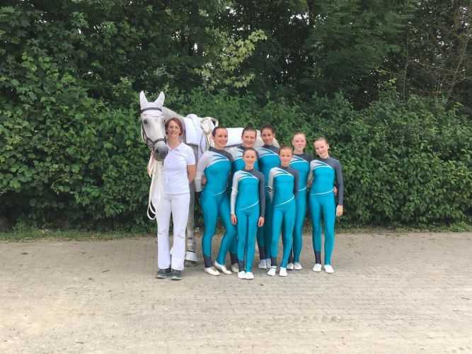 Mit der Pflicht war das L-Team echt zufrieden. Fast alle sind gestanden. Leider hatte danach Amelies Rücken ihr Schmerzen bereitet worauf sie gemeinsam mit den Richtern entschieden, dass sie in der Kür nicht mitstarten wird. Daraufhin mussten sie die Kür noch etwas umbauen. Sina machte den letzten Dreierblock und und Veronica machte zusätzlich noch einen Rückwertsstehen. Leider sprang sie bei ihrem zweiten Block gegen den Griff woraufhin sie nicht mehr aufs Pferd ging um sich nicht noch mehr zu verletzen. Aufgrund dieser Entscheidung fielen zwei schöne Übungen von Lotta weg, die sie dann improvisiert zeigen musste. Romeo lief aber ganz gut und wollte nur ab und zu etwas traben aber er hat zur Abwechslung einmal nicht versucht zu buckeln.