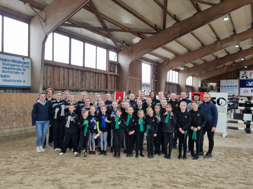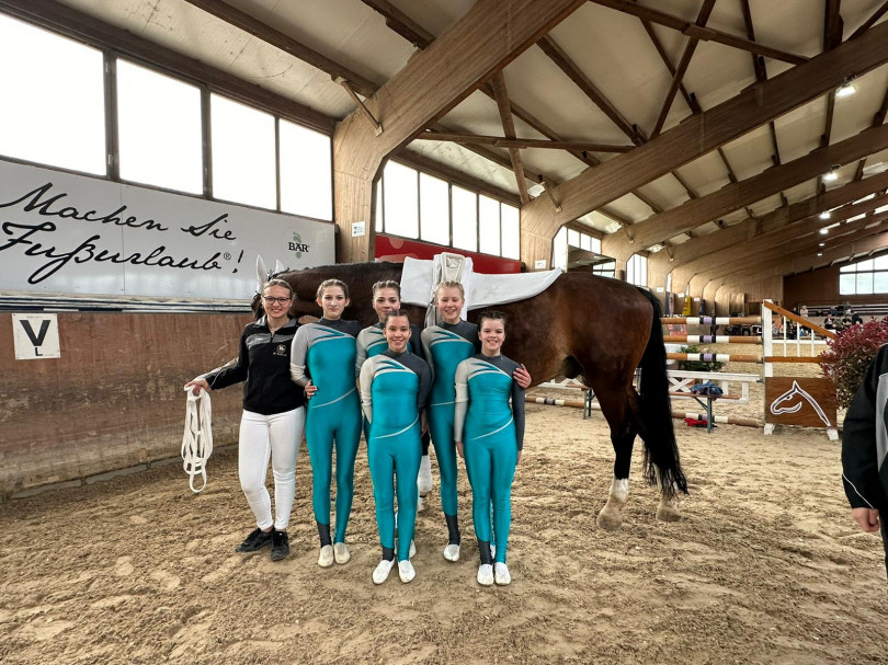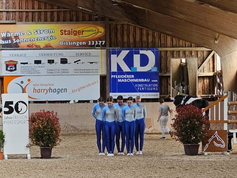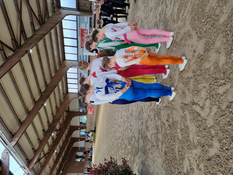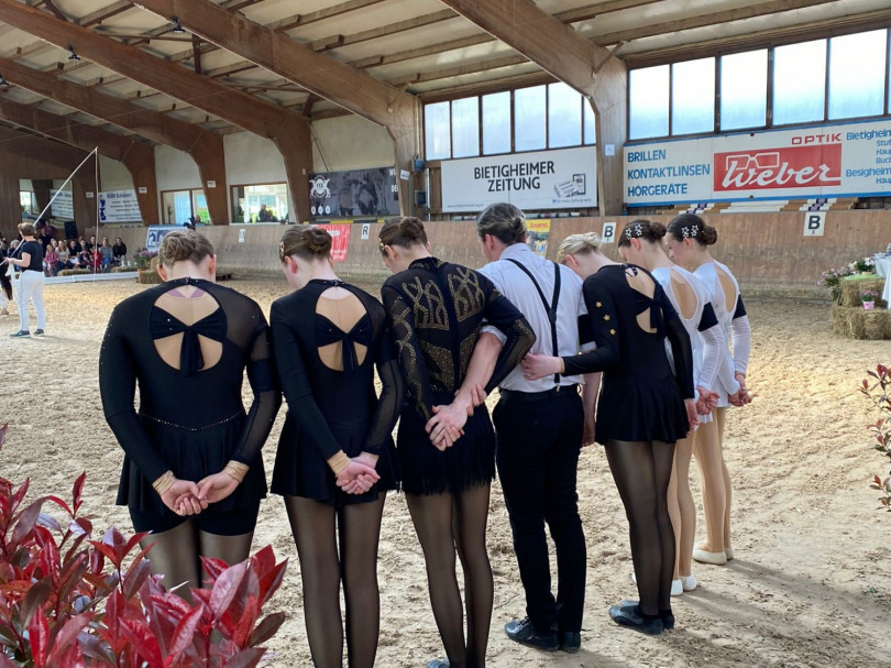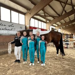 Bereits am Freitag wurde die Anlage für das Turnierwochenende vorbereitet. Durch viele Helfer war der Aufbau schnell erledigt. So konnten wir am Samstag gut vorbereitet starten. Vormittags fanden die Prüfungen der Einzelvoltigierer und A-Gruppen statt. Nachmittags ging es mit den M-/L- und Juniorgruppen weiter. Hier durfte unser M-Team die Bietigheimer Turnier Saison einleiten. Sie legten mit einem souveränen Pflichtstart vor, worauf eine grandioser Kürdurchlauf folgte. Damit konnten sie sich den ersten Platz in ihrer Prüfung sichern. Nach so einem erfolgreichen ersten Start schauen wir positiv auf die kommende Turniersaison.