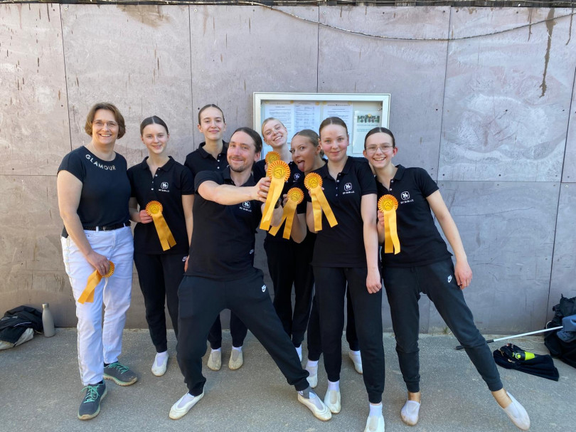 Nachmittags durften unsere beiden Nachwuchsgruppen an den Start gehen. In der Schritt-Galopp Prüfung und der Schritt-Schritt Prüfung Turniererfahrungen sammeln. Die Trainer sind zufrieden mit der Leistung ihrer Gruppen.