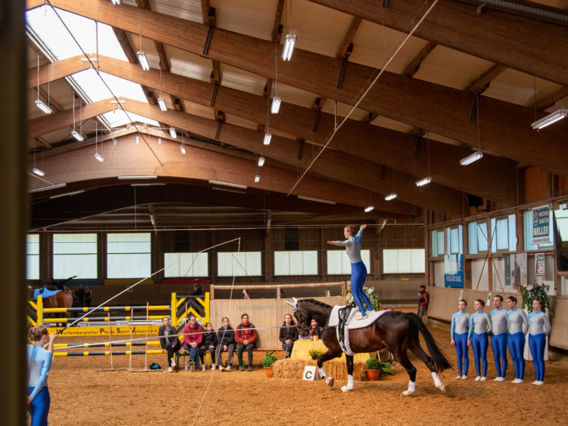 Die ersten Vorbereitungen für den Start wurden wie immer während unseres Freitagstrainings durchgeführt. Da wir aber erst am Sonntag starteten, haben wir uns dann am Samstag nochmal getroffen, um alles voll vorzubereiten – denn am Sonntag sollte es früh losgehen. Um 5:30 war Treffpunkt im Stall, um die Frisuren fertig zu machen und unser Sport-Pony aufzuwecken. Das hat auch alles wunderbar funktioniert und um 6:30 ging es dann ganz entspannt los nach Ulm.