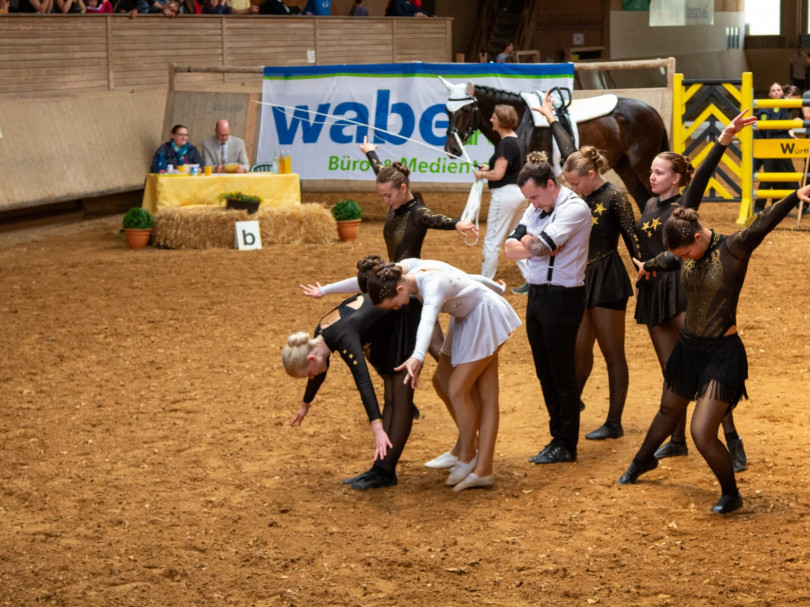 Also haben wir uns mit einem ganz guten Gefühl für die Kür umgezogen und Comic etwas Ruhe und Beine vertreten gegönnt. Dann war es aber auch schon wieder so weit und nach dem Aufwärmen hieß es wieder: „Sweet Dreams“. Und wie es Sitte ist für unser Team, haben wir natürlich zum letzten Turnier nochmal was über den Haufen geworfen - sonst wäre es ja langweilig :-D.