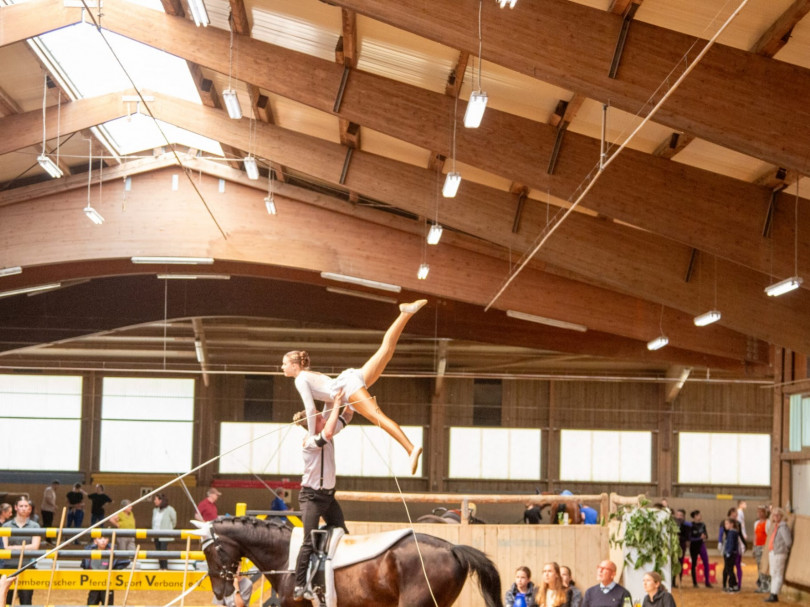 In Ulm angekommen hatten wir dann noch genug Zeit um auch hier alles entspannt anzugehen und noch etwas zu Frühstücken etc. Mit genügend Vorlauf haben wir dann begonnen Comic zu richten und ihn und uns für unseren Pflichtstart warmzumachen. Wir lieferten fast alle eine akzeptable Leistung in der Pflicht ab – Comic wiederum als akzeptabel zu beschreiben wäre nicht ausreichend. Nach kleinen Startschwierigkeiten zwischen dem Häggigewohntem Team und dem "kleinen" Sport-Pony-Comic kann man mittlerweile nur sagen: Momentan ist er mit Caro zusammen unser stärkstes Teammitglied – und das haben wir als Voltis auch erkannt.