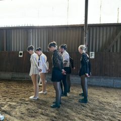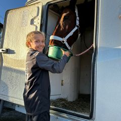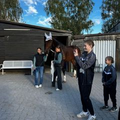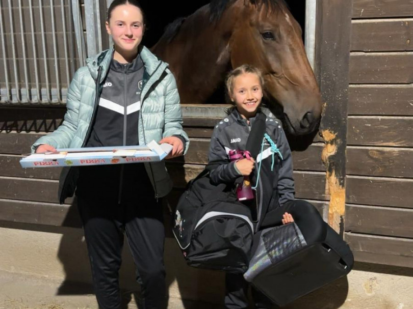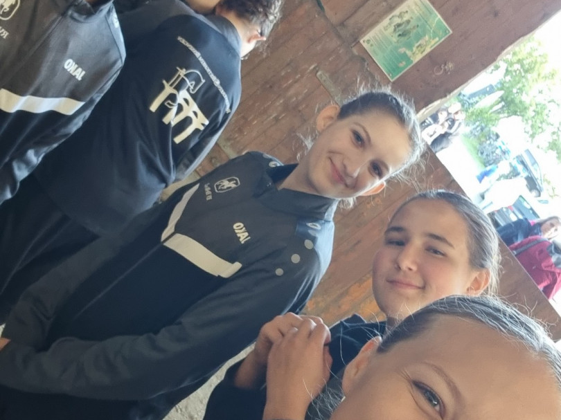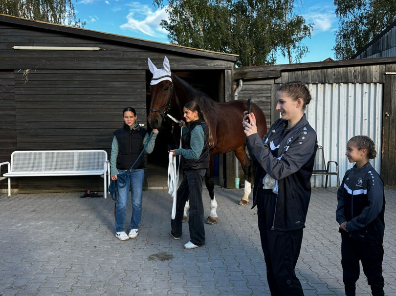 Am nächsten Tag, um kurz vor 10, haben sich die beiden Teams im Stall getroffen, um die Frisuren noch fertig zu machen und unsere zwei besten Pferde für die Fahrt vorzubereiten.