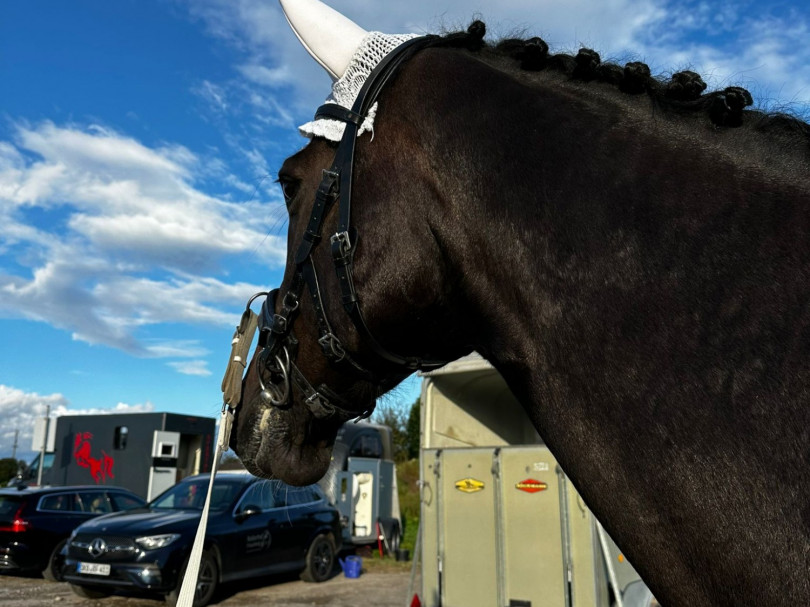 Dann ging es schon ans Verladen und "juhu" - beide Pferde standen in kürzester Zeit auf dem Hänger. Somit konnten wir uns ganz entspannt auf den Weg nach Wiesloch begeben.