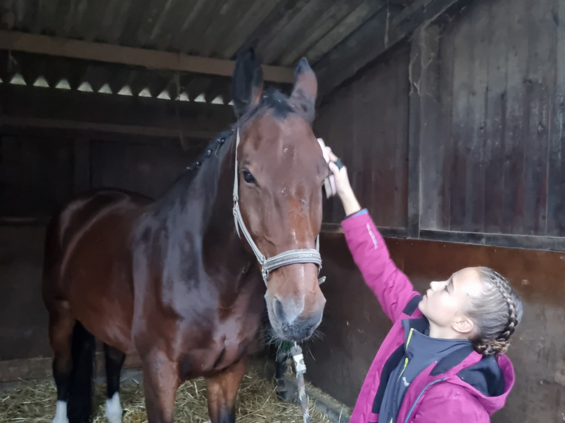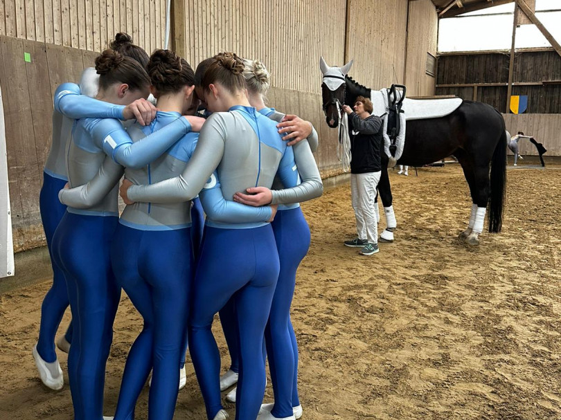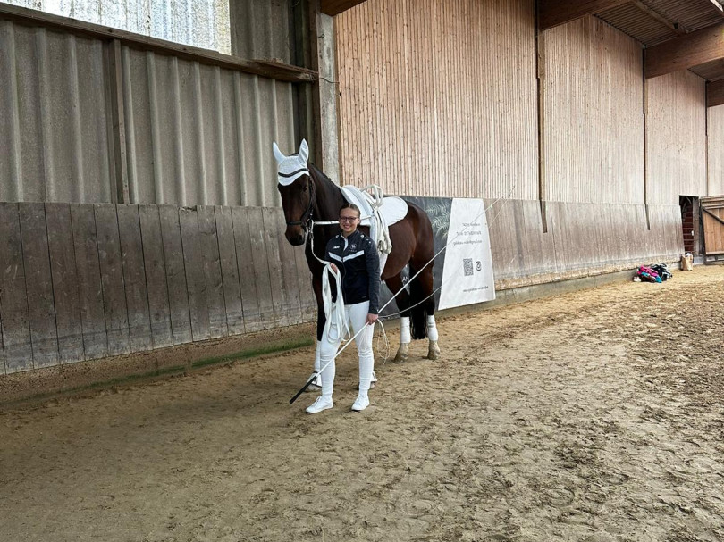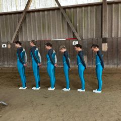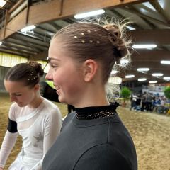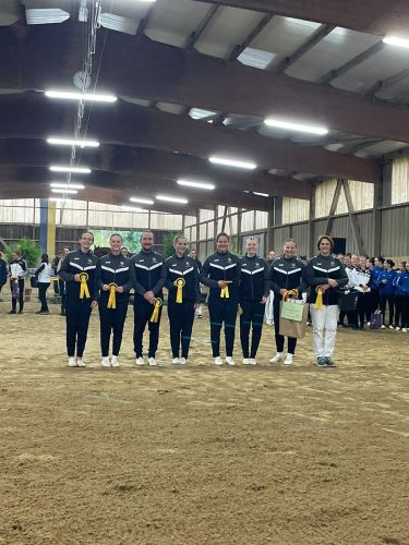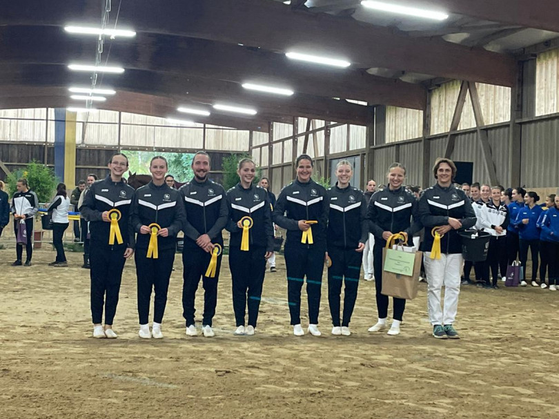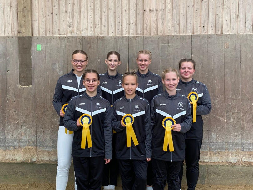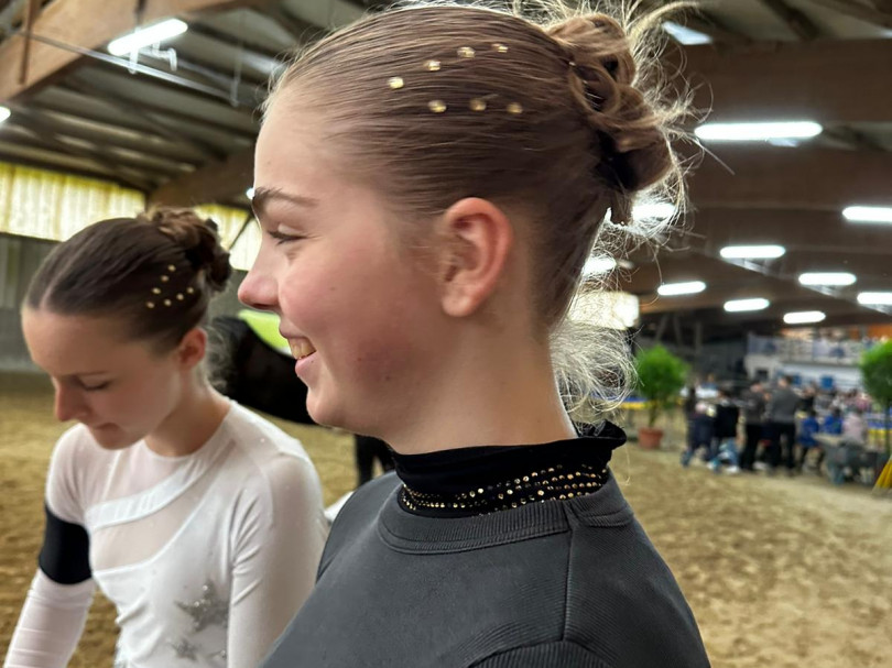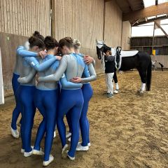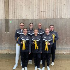Nachmittags ging es für die M los in die 1. Wertungsprüfung der Württembergischen Meisterschaft. Auch sie zeigten eine schöne Pflicht. Etwas später in der Kür mangelte die Vorstellung aufgrund eines problematischen Musiksarts. Dennoch konnten die Voltis das einigermaßen schön umturnen. Auch sie wurden mit dem 1. Platz und einer 6,44 belohnt. Auch Comic hat sich mal wieder von der Besten Seite gezeigt - er wurde bestes Pferd der M-Gruppen.