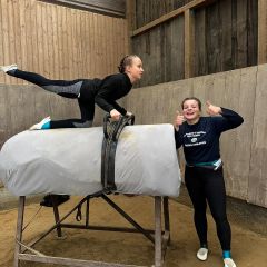 Dort angekommen konnten sich die Voltigierer der A-Gruppe entspannt auf ihre Prüfung vorbereiten. Nach einer sehr sauber geturnten Pflicht und einer soliden Leistung von Häggi konnten sie voller Motivation in die Kür einlaufen. Auch hier zeigten sie was sie alle, was in ihnen steckt. Belohnt wurden sie mit einer Wertnote von 6,075. Die 3. Aufstiegsnote diese Saison. Herzlichen Glückwusch an das zukünftige L-Team Bietigheim.
