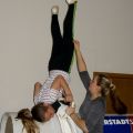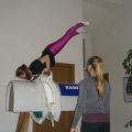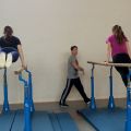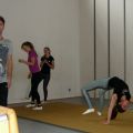 Statt Carneol durften wir Romeo, das Pferd unseres L-Teams und der Einzelvoltigierer mitnehmen (Danke dafür!) und haben uns an dem Wochenende sowohl auf dem Pferd als auch am Turnpferd ausgiebig der Pflicht, vor allem dem Aufsprung und den Schwungübungen, gewidmet. Danke an die Referenten, die mit großem Einsatz dabei waren und uns wieder ein Stück weiter gebracht haben! Neben dem Voltigieren stand auch wieder das Turntraining auf dem Programm, sodass wir in der Turnhalle neben Kraft und Dehnung wieder fleißig Handstände, Räder, Handstandüberschläge, Flick Flacks und Salti geübt haben.