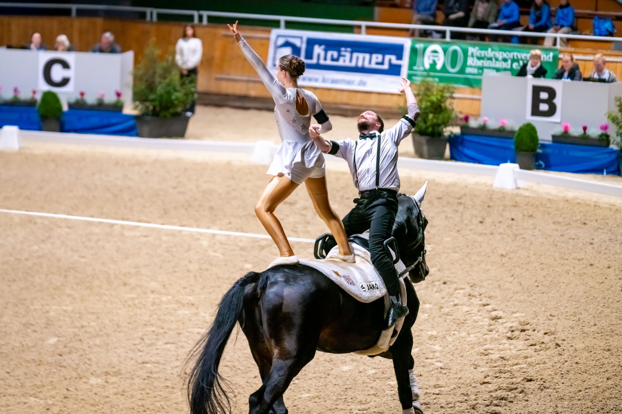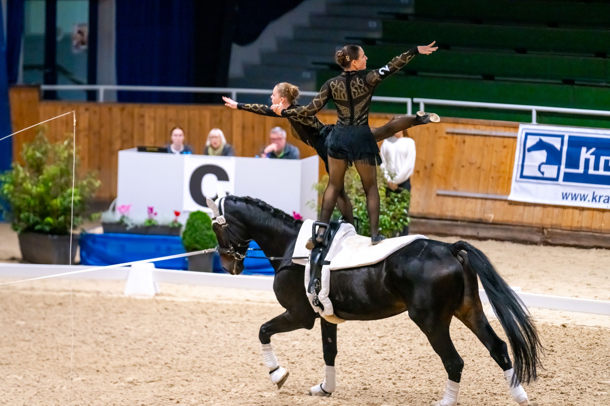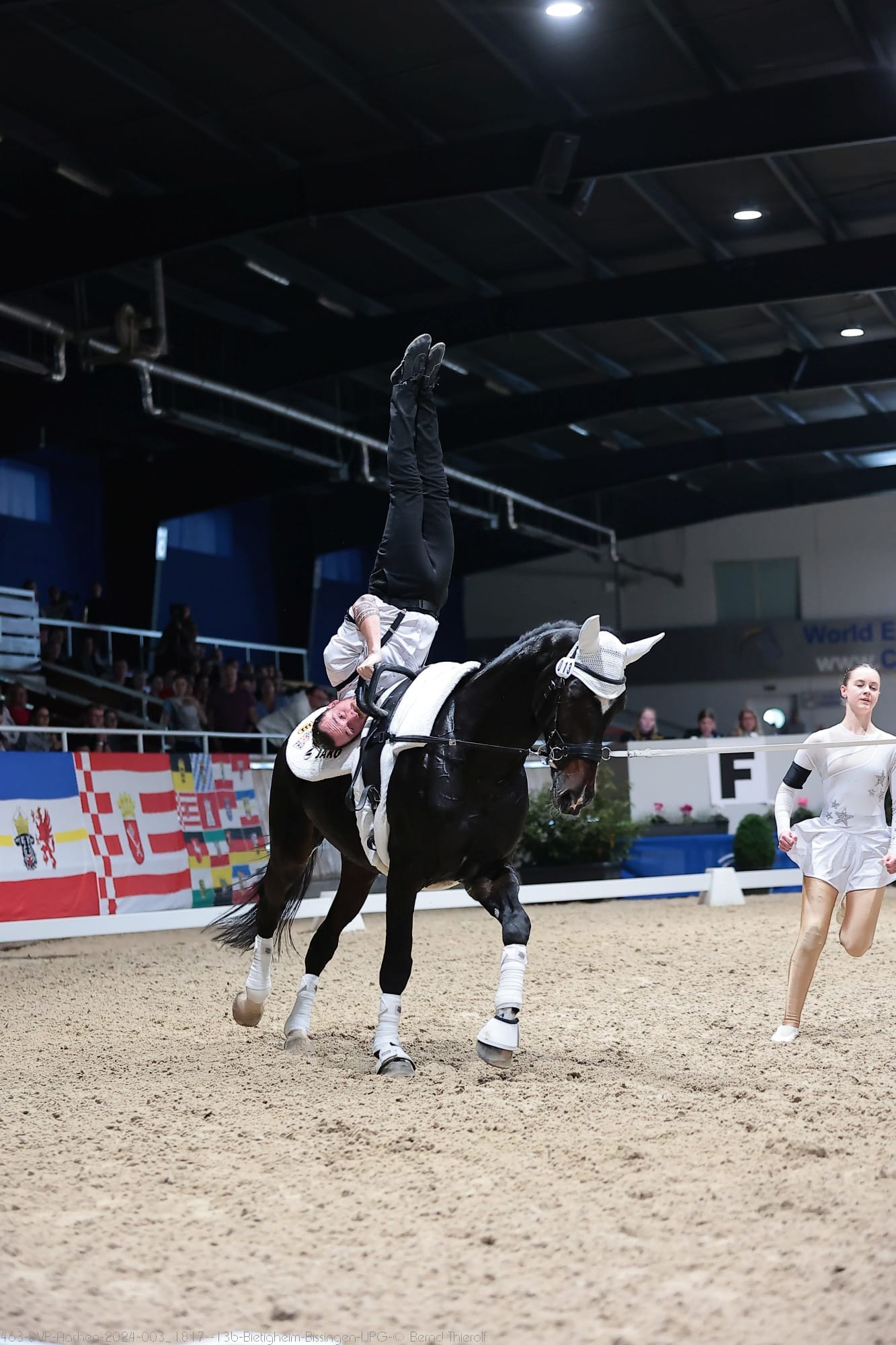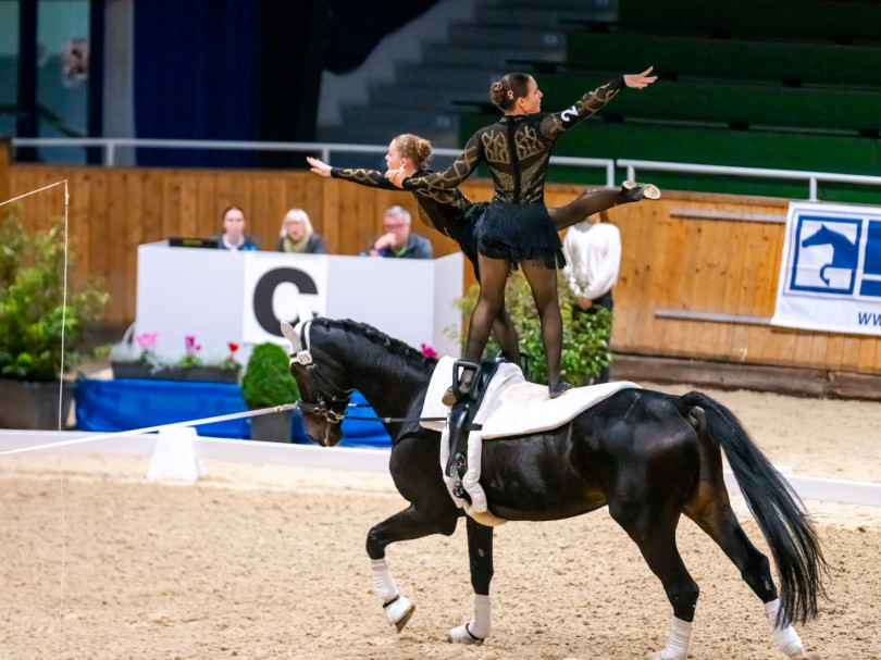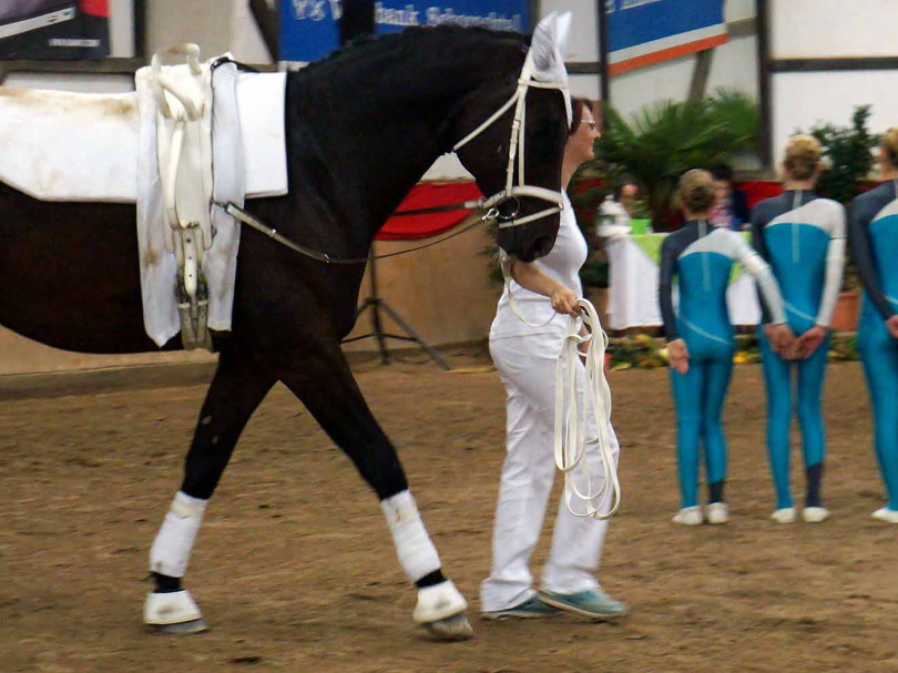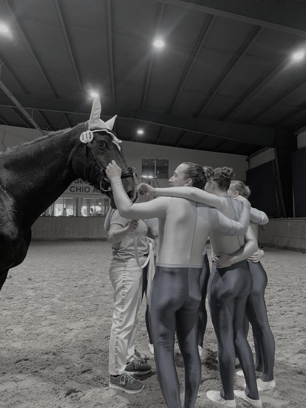 Carni befindet sich seit Frühjahr 2011 bei uns im Verein und hat 2012 seine erste Voltigiersaison für das M-Team hinter sich gebracht. Während wir Anfang 2012 langsam anfingen zu zweit auf ihm zu voltigieren, hat er uns bereits im April 2012 auf seinem ersten Turnierstart in Leonberg sicher durch den Zirkel getragen. Carni hat sich unglaublich schnell entwickelt und ist ab seinem ersten Turnier ein absolutes Verlasspferd gewesen. Wir wollen und können ihn uns mittlerweile gar nicht mehr wegdenken und sind stolz, dass er für uns auf jedem Turnier zu einem absoluten Ruhepol geworden ist. Seine Hauptaufgabe ist und bleibt immer noch das M-Team, nebenbei hat er über die Jahre aber auch immer wieder das Juniorteam und unsere Einzelvoltigerer unterstützt, bis es diese nicht mehr gab. Nach einer verletzungsbedingten Pause, ersetzt er Ende 2018 Romeo in der L-Mannschaft. Leider musste Romeo nach dem ersten Turnier der Saison wieder seinen alten Platz einnehmen, da Carni nach einer Verletzung nicht mehr für den Voltigiersport geeignet is.
