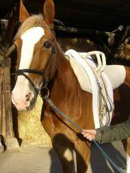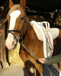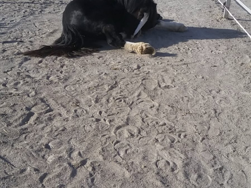 Nobody ist nach seiner Eingewöhnungsphase als Voltigierpferd leider erstmal verletzungsbedingt für längere Zeit ausgefallen. Seit Ende 2018 wurde er von dem L-Team wieder an das Voltigieren gewöhnt. Seit Anfang 2019 lief er, wie geplant für die Fördergruppe. Leider fiel er kurz darauf wieder aus, was das endgültige Volti Aus für ihn bedeutete.