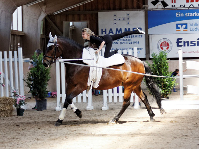 Carneol ist ein extrem gelassenes und ruhiges Pferd und lässt sich durch nichts so leicht aus der Ruhe bringen. Fähigkeiten, die beim Voltigieren natürlich unglaublich wichtig sind. Seine sehr schwungvolle und dynamische Gallopade stellt uns manchmal vor so manche Herausforderung, macht das Voltigieren auf ihm aber immer wieder zu einem wunderbaren Erlebnis.