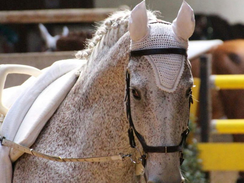 Comic wurde 2019 teil der Bietigheimer Voltigierfamilie. Von Anfang an zeigte er sich von seiner besten Seite. Er hat sich schnell an das Dasein als Voltigierpferd. Er ist super angenehm für die Voltigierer zu sitzen und auch in den Übungen läuft er wie ein Uhrwerk. In der Zeit in der Hagrid verletzungsbedingt ausfiel, lief er häufig auch unter der M-Mannschaft und auch die waren begeistert von seiner ruhigen, aber schwungvollen Galoppade. Seit Mitte 2021 läuft er jetzt für die Mannschaft Bietigheim 2 und für die Fördergruppe. Beide Aufgaben meisterte er trotz der sehr langen Pause in 2020 mit Bravour. 2022 darf er sich aber voll und ganz auf das A-Team konzentrieren. Da Romeo uns Ende 2022 verlassen musste, darf Comic zusätzlich für die A-Gruppe auch die Fördergruppe auf sich turnen lassen. In der Saison 2024 hat Comic seinen Platz im M-Team und darf zusätzlich noch für die Nachwuchsgruppe laufen. Leider ist Comic im November 2024 an einer Kolik gestorben. Wir werden ihn alles sehr vermissen.