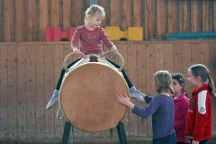 Während die Voltigierer der Fördergruppe längerfristig auf einen Wechsel in die Turniergruppen vorbereitet werden, liegt das Hauptaugenmerk in der Nachwuchsgruppe vor allem auf dem spielerischen Heranführen der Kinder an den Pferdesport.