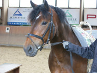 der Pechvogel hat Hufkrebs. Der Verein hat lange versucht ihn zu halten und viel Tierarztkosten und Zeit investiert weil er ein sehr zuverlässiges, braves Schulpferd mit Schwerpunkt schwache Reiter, Anfänger, Voltige und Therapeutisches Reiten war – leider vergeblich. Immer wieder hatte er Rückfälle. Verena Eng hat ihn übernommen und versucht mit viel persönlichem Einsatz ihn zu retten.