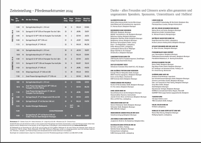 Für alle Interessierten finden Sie hier die Ausschreibung und die Zeiteinteilung zum Pferdemarkttunier