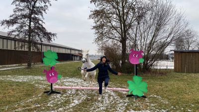 Gestern Abend wurden die 37. German Masters in der Stuttgarter Schleyerhalle mit einem bunten Rahmenprogramm offiziell eröffnet. Noch bis Sonntag trifft sich die internationale Reitelite in der Landeshauptstadt. Als absolutes Highlight für den Reiterverein Bietigheim-Bissingen waren auch drei Vereinsmitglieder am Start im Hallenensemble aus Schleyerhalle und Porschearena. Yvonne Fuchs (Führerin), Clara Stammberger (Reiterin) und Pony Berta nahmen an einer Pony-Agility-Prüfung mit Erfolg teil. Hierbei bildete immer ein Pony-Team gemeinsam mit einem Hunde-Agilty-Paar, aus der Weltspitze des Hundesports, ein Team und es musste ein anspruchsvoller Parcours vor tausenden Zuschauern in möglichst kurzer Zeit gemeistert werden. Unter tosendem Applaus drehten alle Teilnehmer und Teilnehmerinnen samt ihren tierischen Partnern nach der Prüfung eine Ehrenrunde vor dem begeisterten Publikum in der Schleyerhalle. Der gestrigen Prüfung vorausgegangen war eine intensive Trainigsphase mit Probetrainings in Herrenberg und Jettingen. Insgesamt starteten zehn Teams aus Baden-Württemberg.