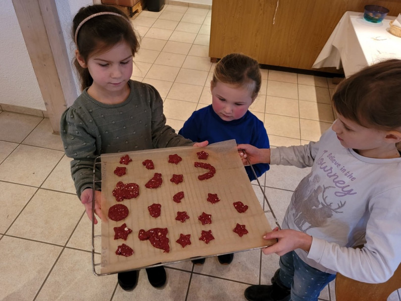 für unsere vierbeinigen Lieblinge (man kann sie auch selber essen ;) Wie man sieht waren alle mit Eifer dabei und die Ergebnisse können sich sehen und schmecken lassen
