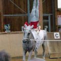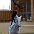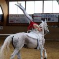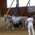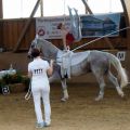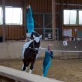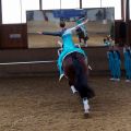 Nachmittags gings dann sofort mit unseren Einzeln weiter. Carina, Luna, Becci und Tobi starteten alle mit Romeo im M-Einzel. Romeo war leider schon in der ganzen Vorbereitung angespannt und nervös. Im Turnierzirkel ist er dann aber sehr brav durchgelaufen, auch wenn er dabei verkrampft war. Mit ein bisschen mehr Erfahrung wird er aber bestimmt auch auf den Turnieren bald die Gelöstheit zeigen können, die er im Training hat. Die Einzelstarts selber liefen ruhig und sicher durch. Carina erreicht mit einer 6,660 den 2. Platz, Luna und Tobi teilten sich mit einer 6,526 den 3. und Becci erreichte eine 6,340 und damit den 6. Platz. Luna konnte auch bei den M-Einzeln den Sonderpreis für die beste Pflicht einheimsen!