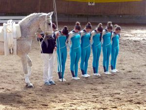 Aber es hat sich gelohnt! Der Mannschaft gelang ein richtig sauberer Wohlfühlstart. Um Romeo in seinem ersten Jahr nicht zu überfordern, haben wir auf schwierigere Elemente in der Kür verzichtet und uns vor allem auf die Ausführung konzentriert. Und der Plan ist aufgegangen: Genauso ruhig und ordentlich wie das Pferd, haben auch die Voltigierer ihr Programm durchgezogen. Wir haben uns einfach so richtig gefreut! Vor allem, als dann auch noch die Wertnote bekannt wurde: eine 6,0!! Die beste Note, die wir überhaupt jemals erreicht haben, sicherte uns den 5. Platz. Und das auf einer Sichtung für die deutschen Juniorenmeisterschaften!