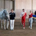 Die Starts selber liefen bis auf die üblichen Unsicherheiten im Stehen ziemlich gut durch und wir waren zufrieden mit unserer Leistung. In der Siegerehrung erreichten wir dann sogar den zweiten Platz, was uns sehr gefreut hat. Als Preis erhilten wir alle warme, selbstgestrickte Socken. Da kennt sich wohl eine Volti-Mama mit den kalten Wintern in der Reithalle aus ;-) Die werden bestimmt zum Einsatz kommen.