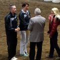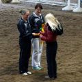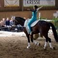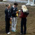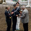 Dann hieß es schnell alle zusammen anpacken, denn die Pferde mussten getauscht werden. Kurze Zeit später ging es nämlich für das M-Team auf Carneol weiter. Die Pflicht lief ordentlich durch und wir waren dann ziemlich erleichtert, dass sich das Steh-Dilemma von letzter Woche nicht wiederholt hat. Dann gings als nächstes mit der Kür weiter - und zwar mit ziemlich gemischten Gefühlen. Verenas Verletzung vor zwei Wochen und der dadurch bedingte Kürumbau hat uns doch etwas ins Trudeln gebracht und einigermaßen turnierreif lief die Kür auch erst im letzten Training durch... Mit den ersten gelungenen Übungen stieg dann während der Prüfung aber die Zuversicht und Sicherheit und wir konnten uns über unseren Kürdurchlauf richtig freuen! So gut lief es vorher noch nie! Mit einer sehr guten 6,0 kamen wir hinter Ilsfeld (6,3) und Mühlacker (6,1) auf den dritten Platz!